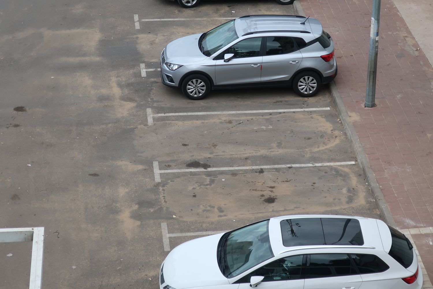 בין שני המכוניות החונות ניתן להבחין בסימנים על הכביש.