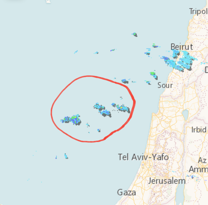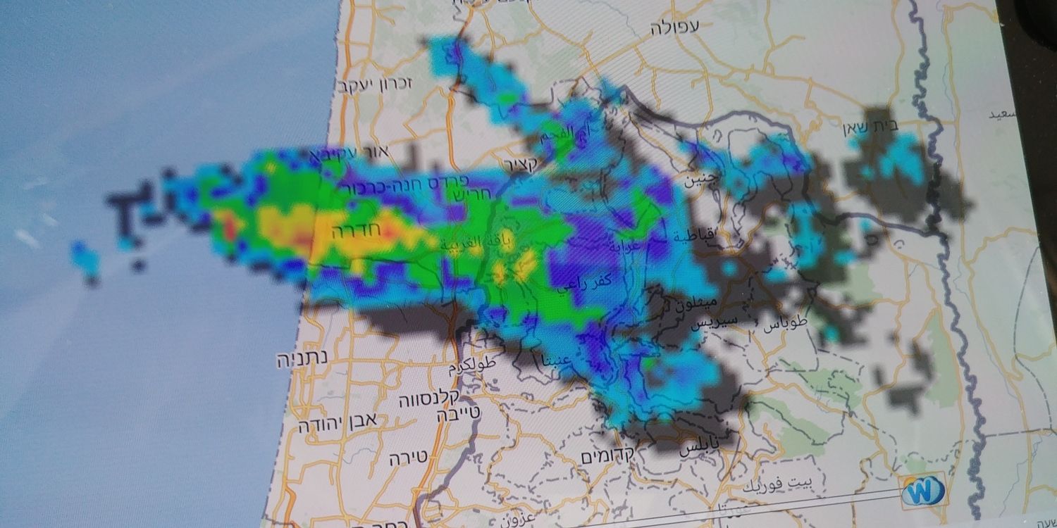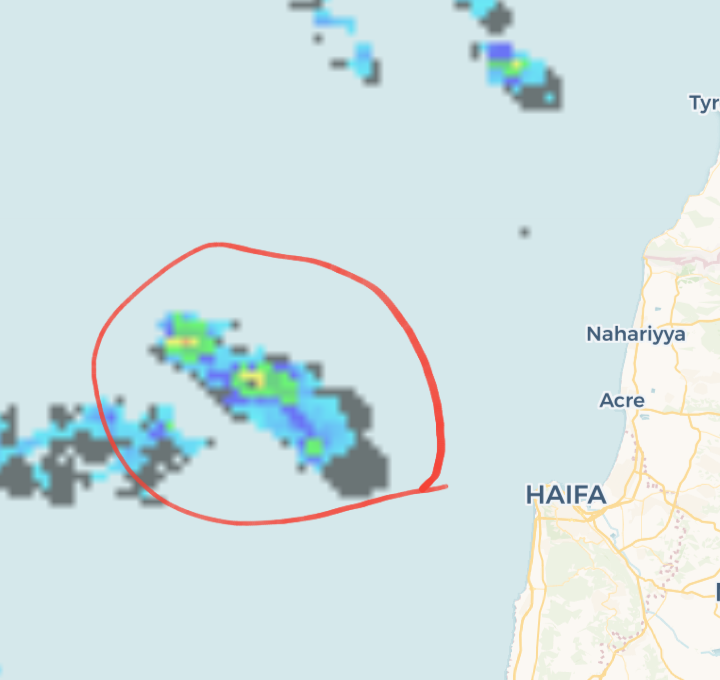 - רואים במכם שכל חיפה מתחת לגשם כבד מאד, אני ממוקם בקצה הגוש הזה, תום