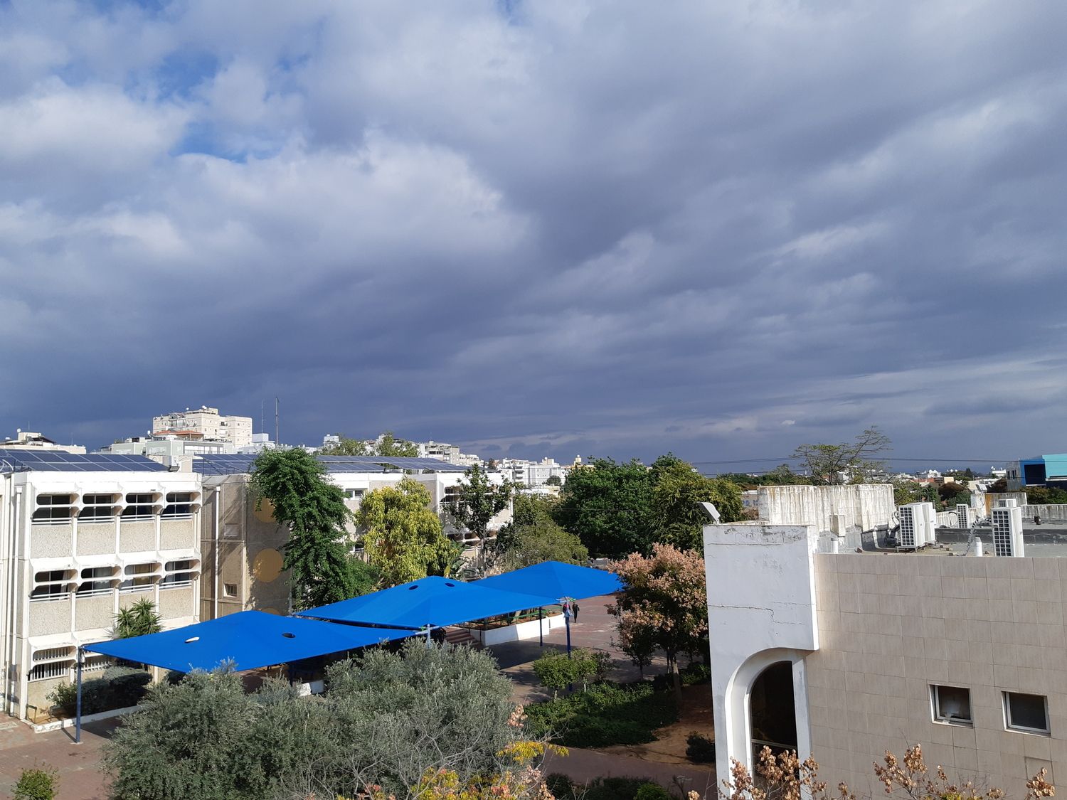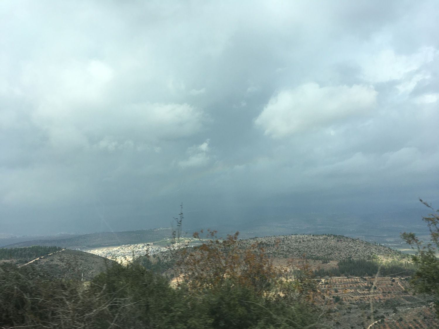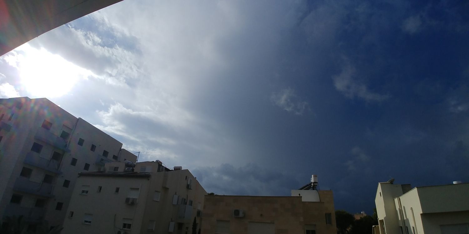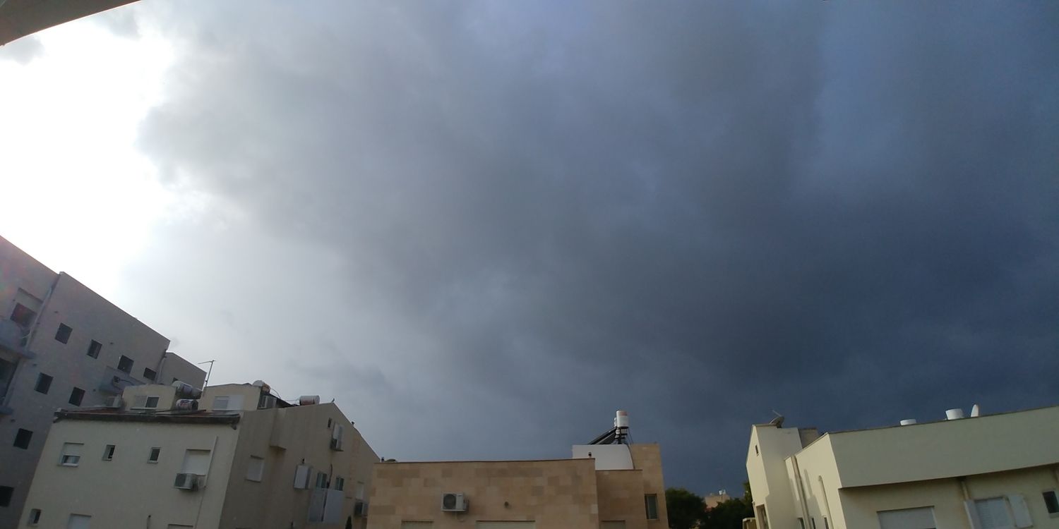 - החל גשם חזק עם שמש, כנראה בקרוב תגיע הקשת. מדהים לראות את כל הצד המערבי פשוט שחור תום