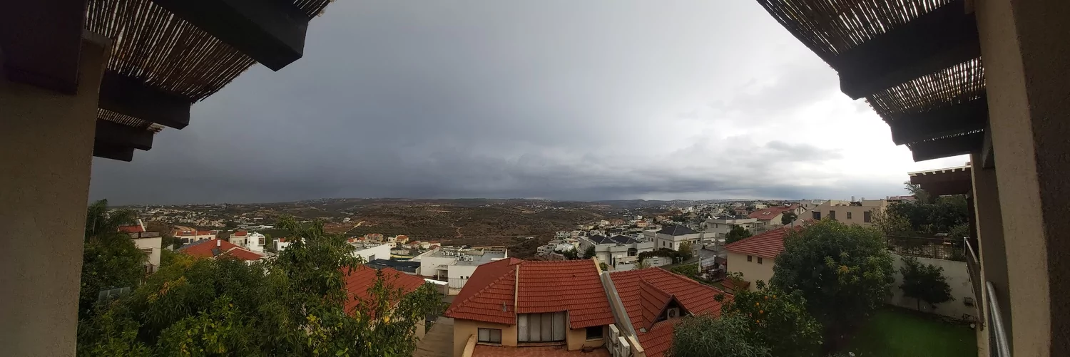 פה היה גשם חזק וממושך במשך כמעט כל שעות הצהריים וכעת מעונן ללא גשם.