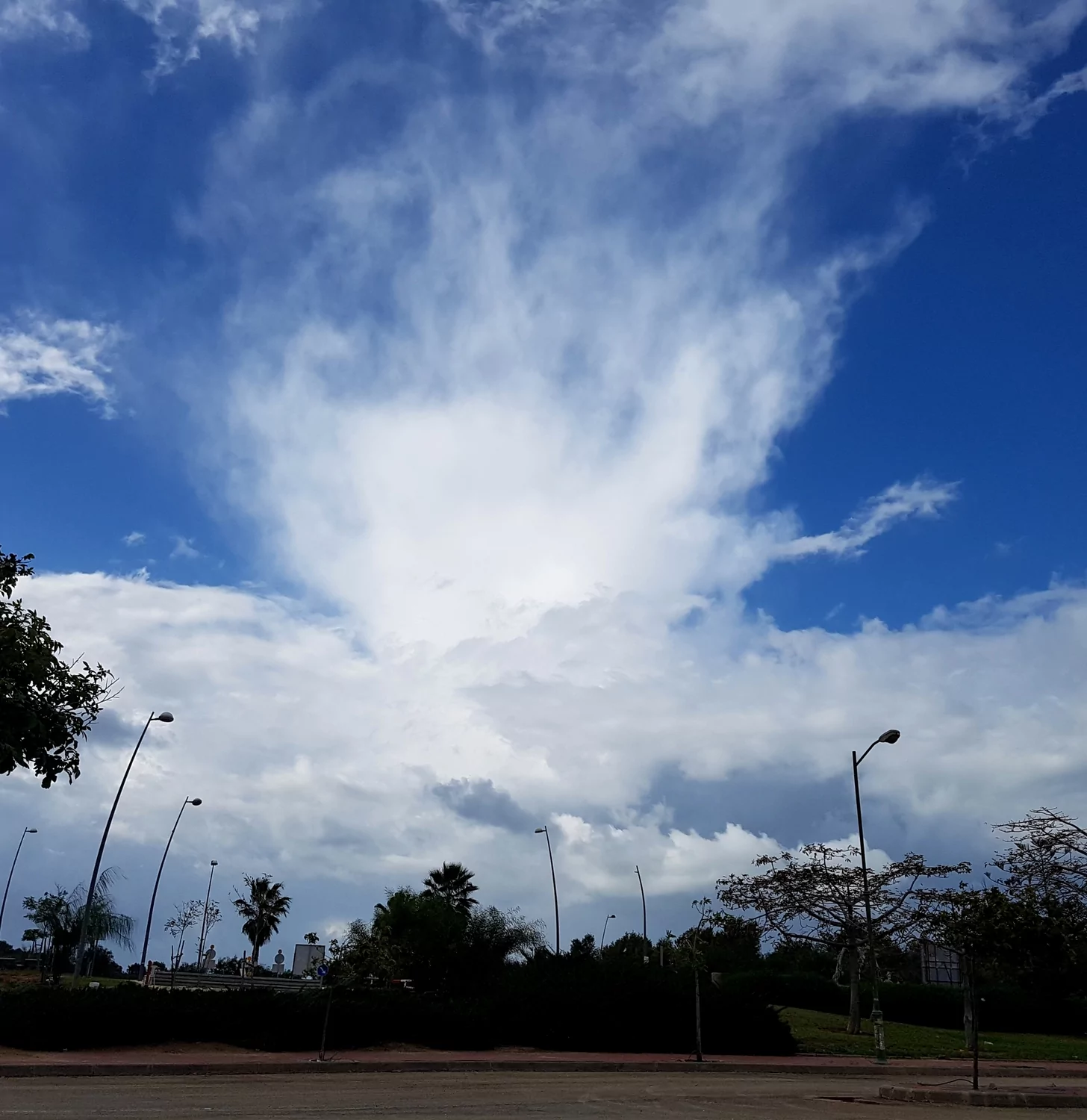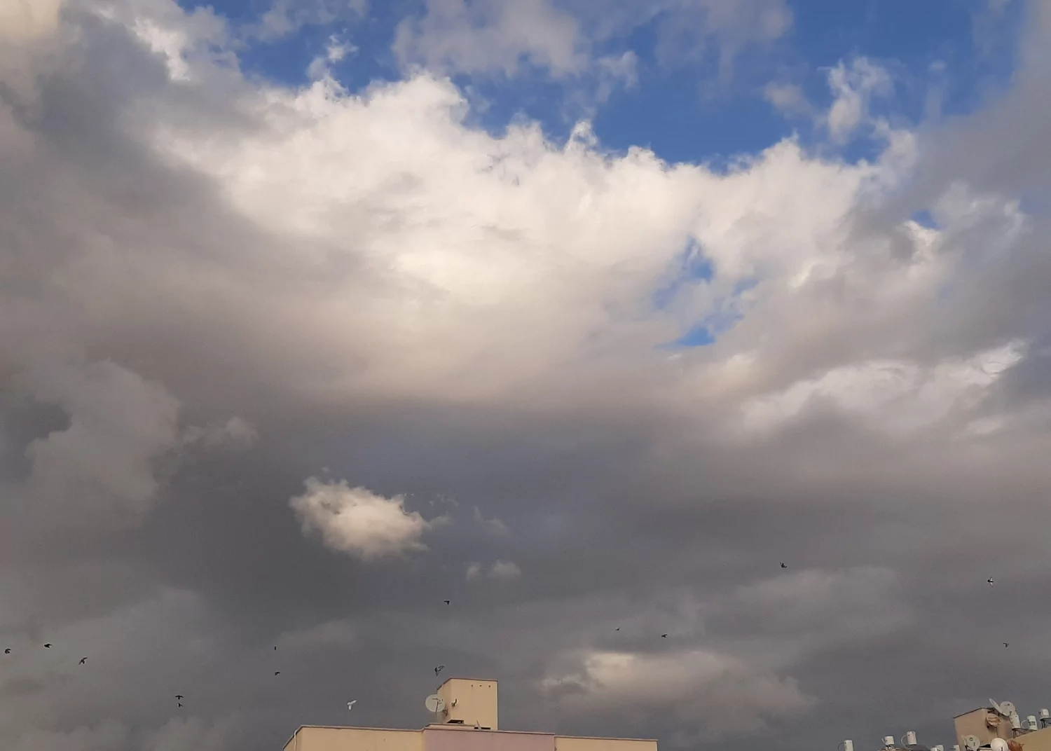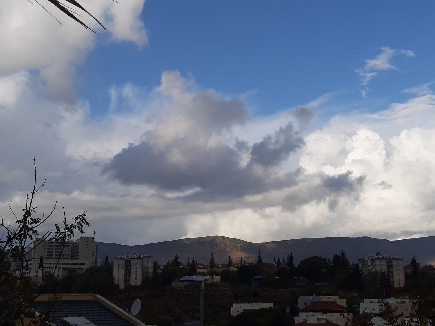 קומולוסים שחורים נראים בצד המערבי, כעת 19° עם 77% לחות