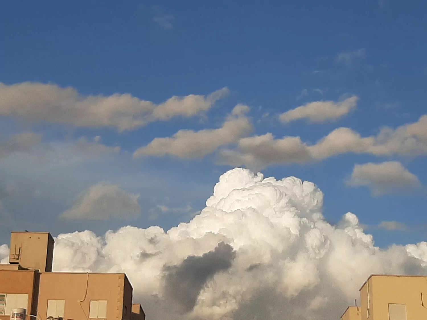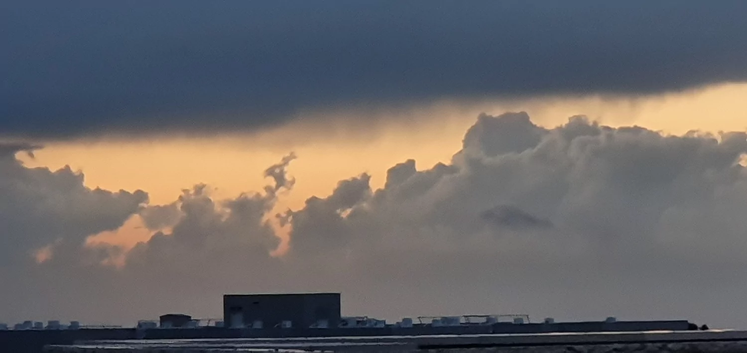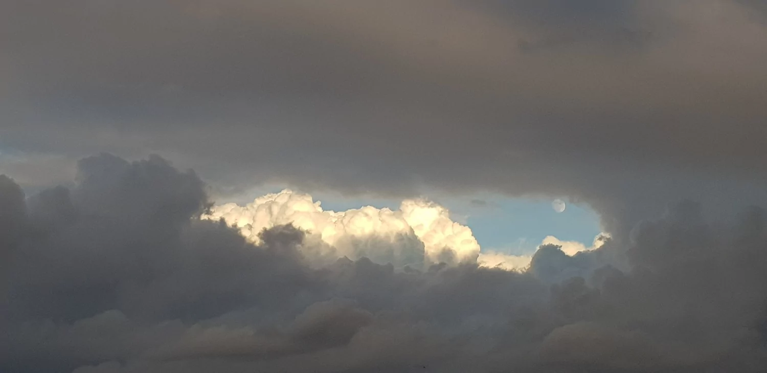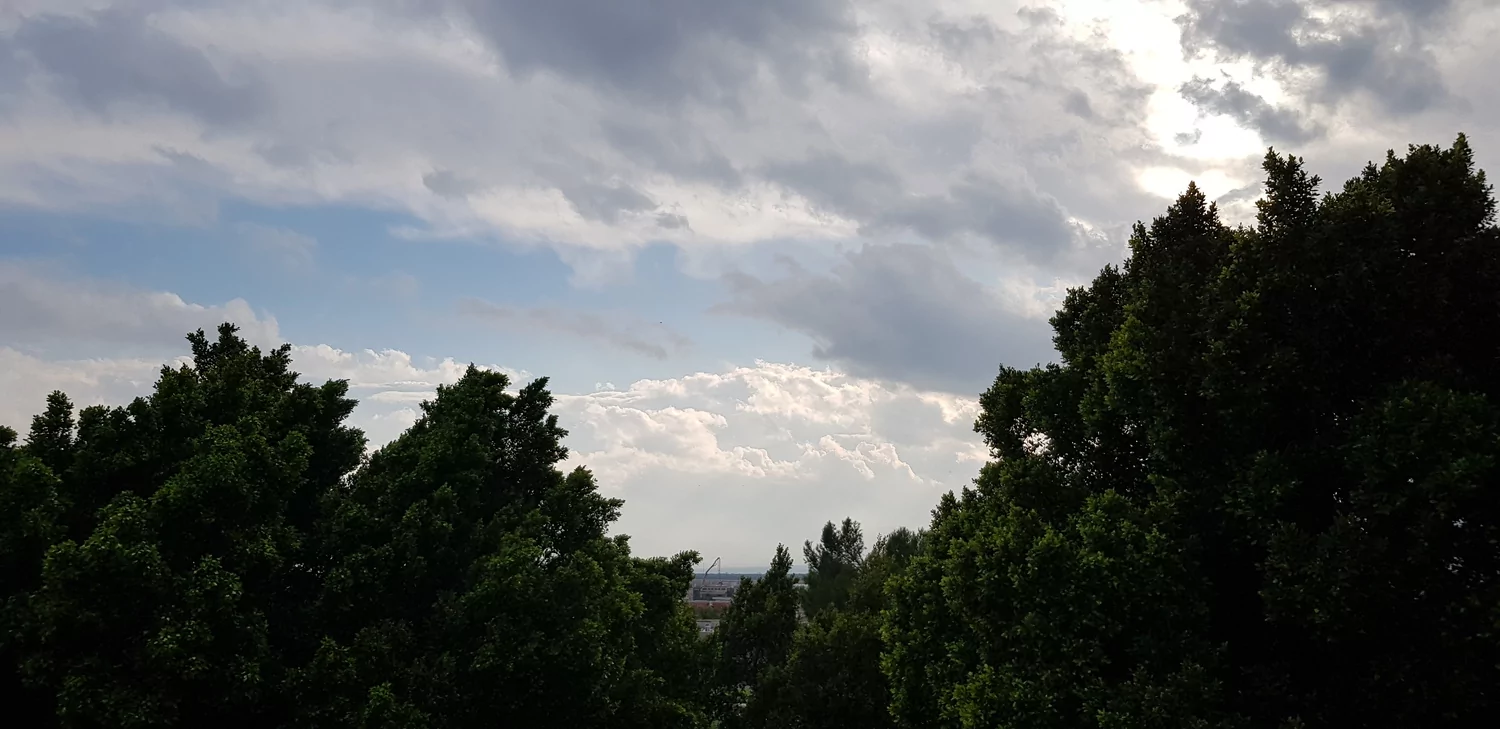 קומולוסים שחורים נראים בצד המערבי, כעת 19° עם 77% לחות