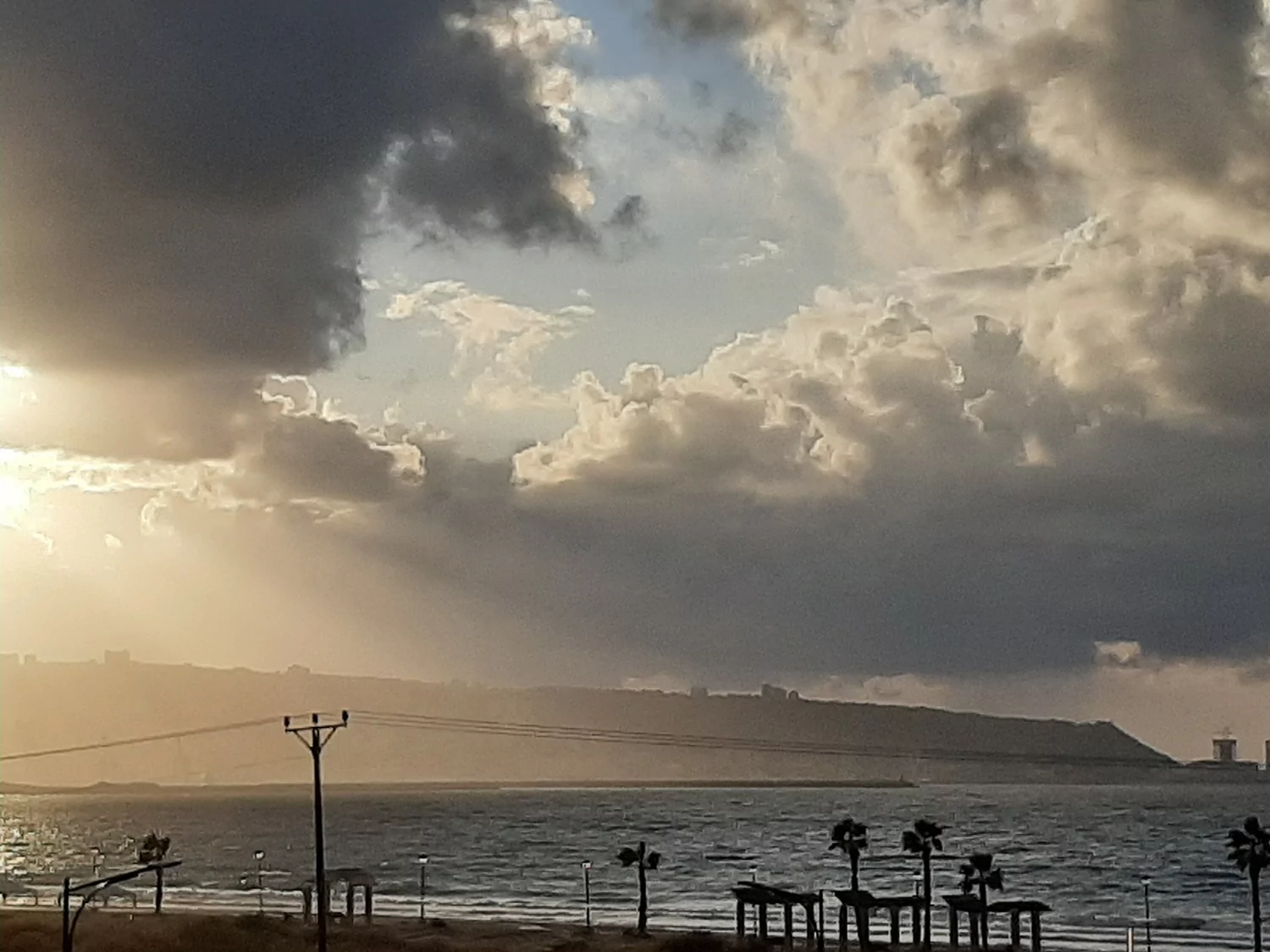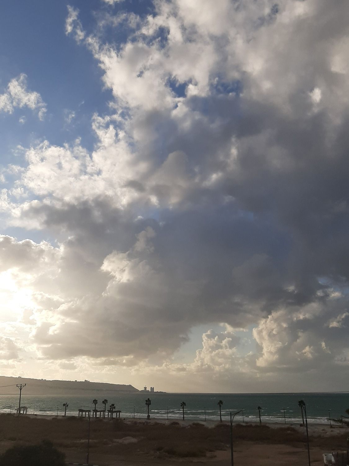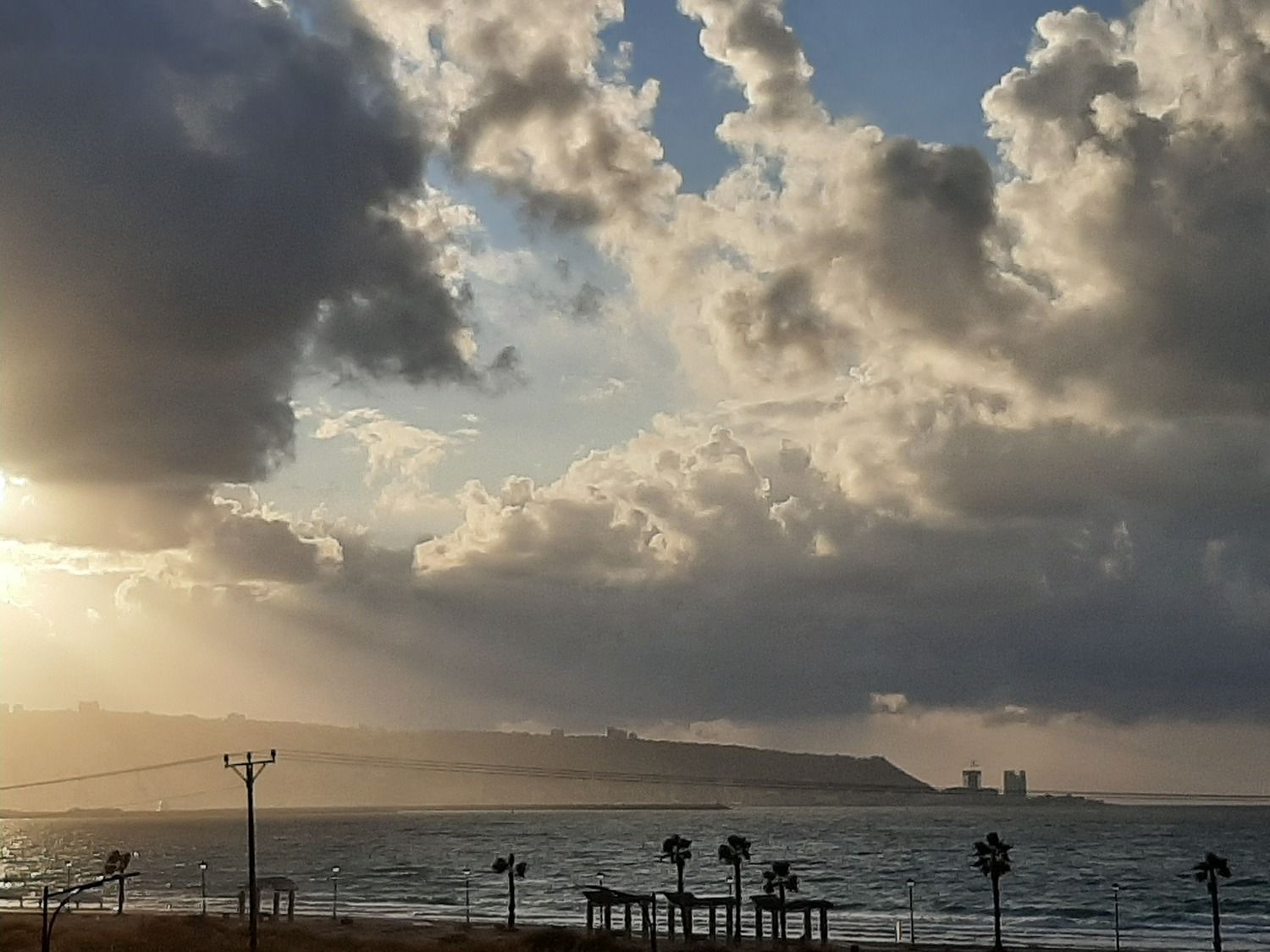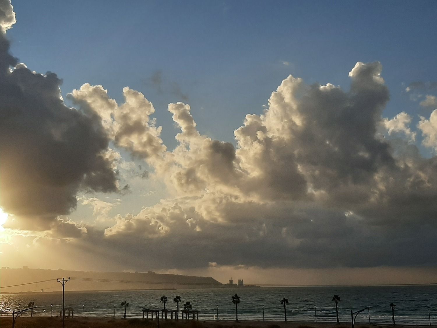 נשמעו רעמים מרחוק כנראה מתל אביב וכבר יצאה שמש