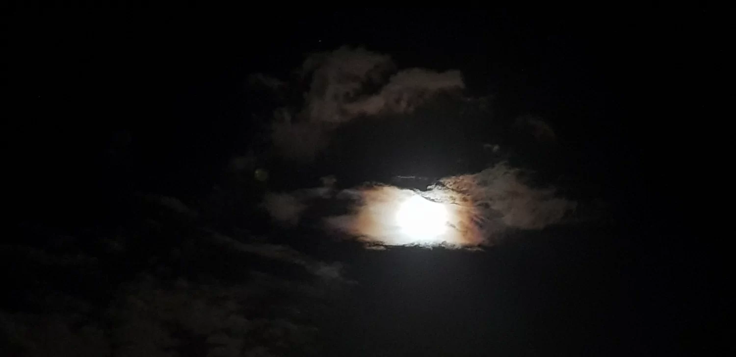 משבי רוח עזים כאן כעת, העננים חולפים על ראשי במהירות גבוהה.