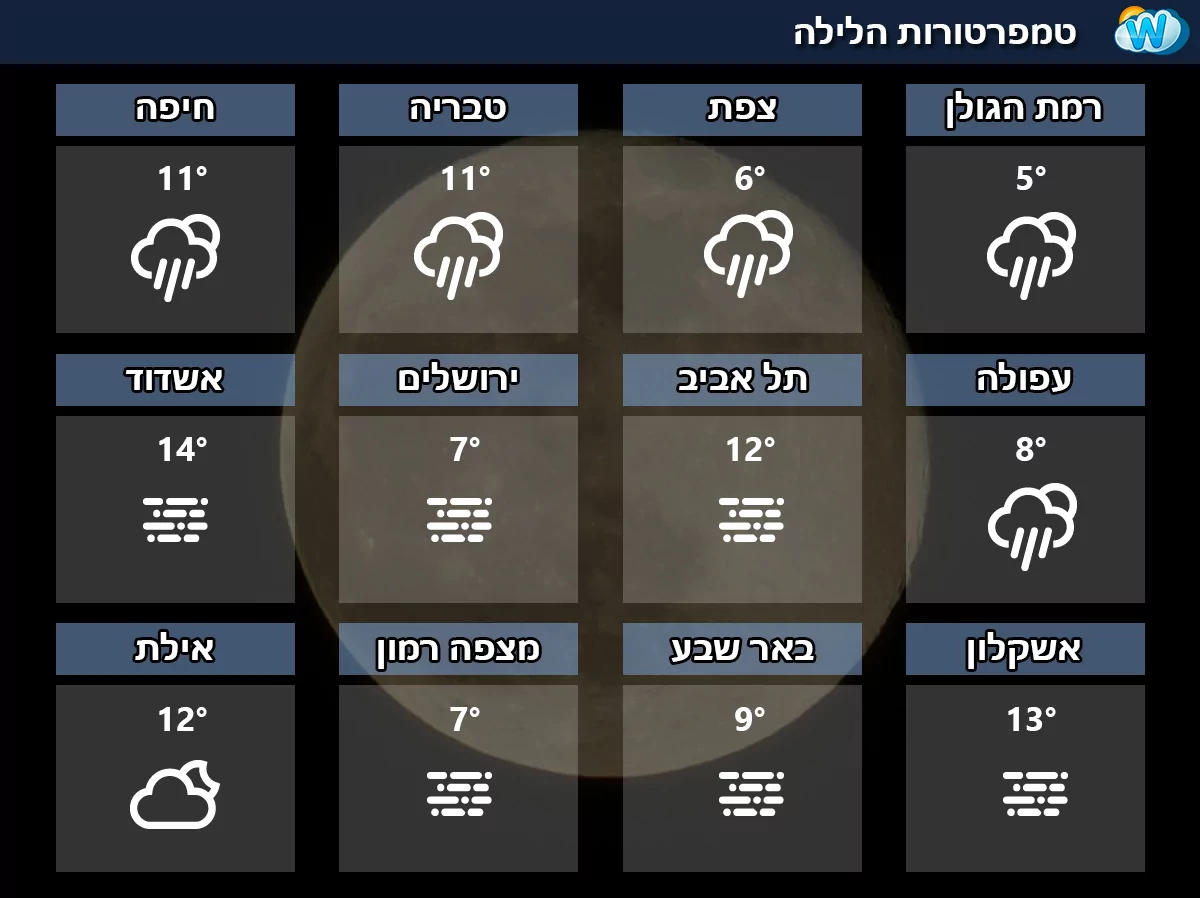 מצורפת תמונת מצב הטמפרטורות להלילה