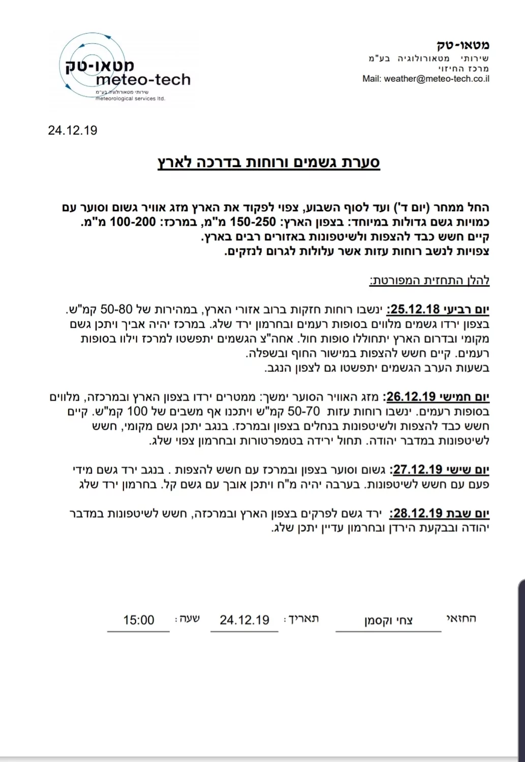 - דיווחי מזג אוויר - יום שלישי 24/12/2019 תום