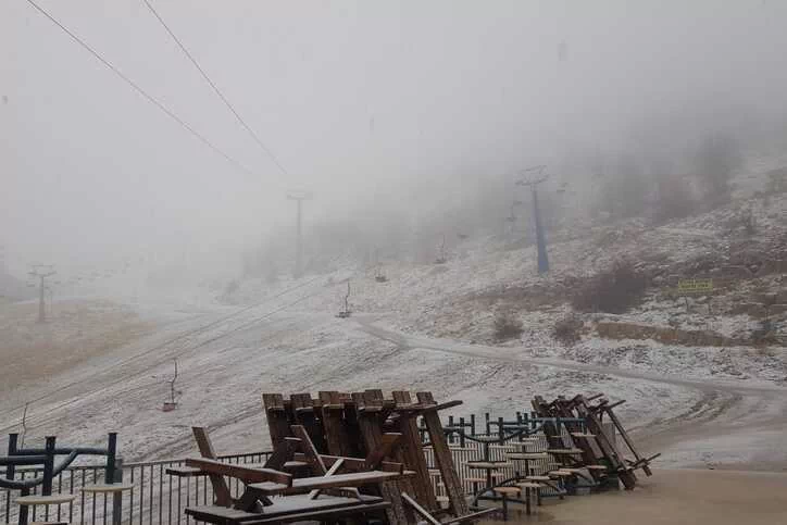 - שלג החל לרדת בחרמון התחתון (לא נערם) בן