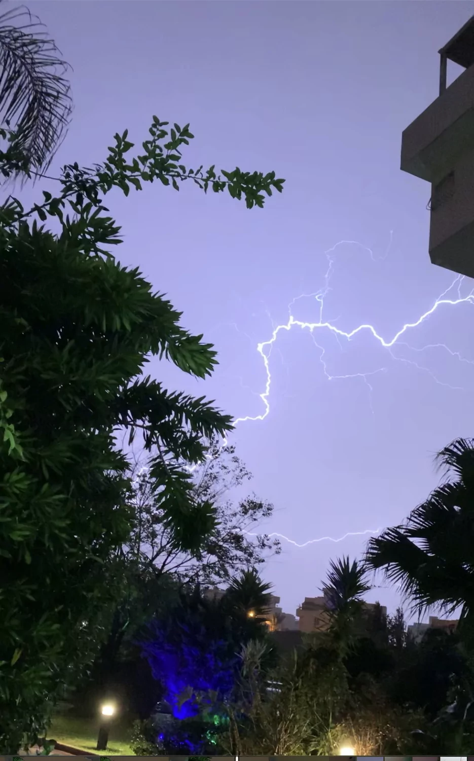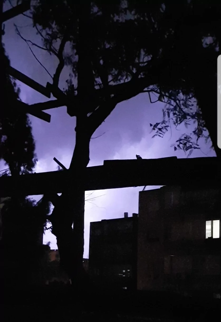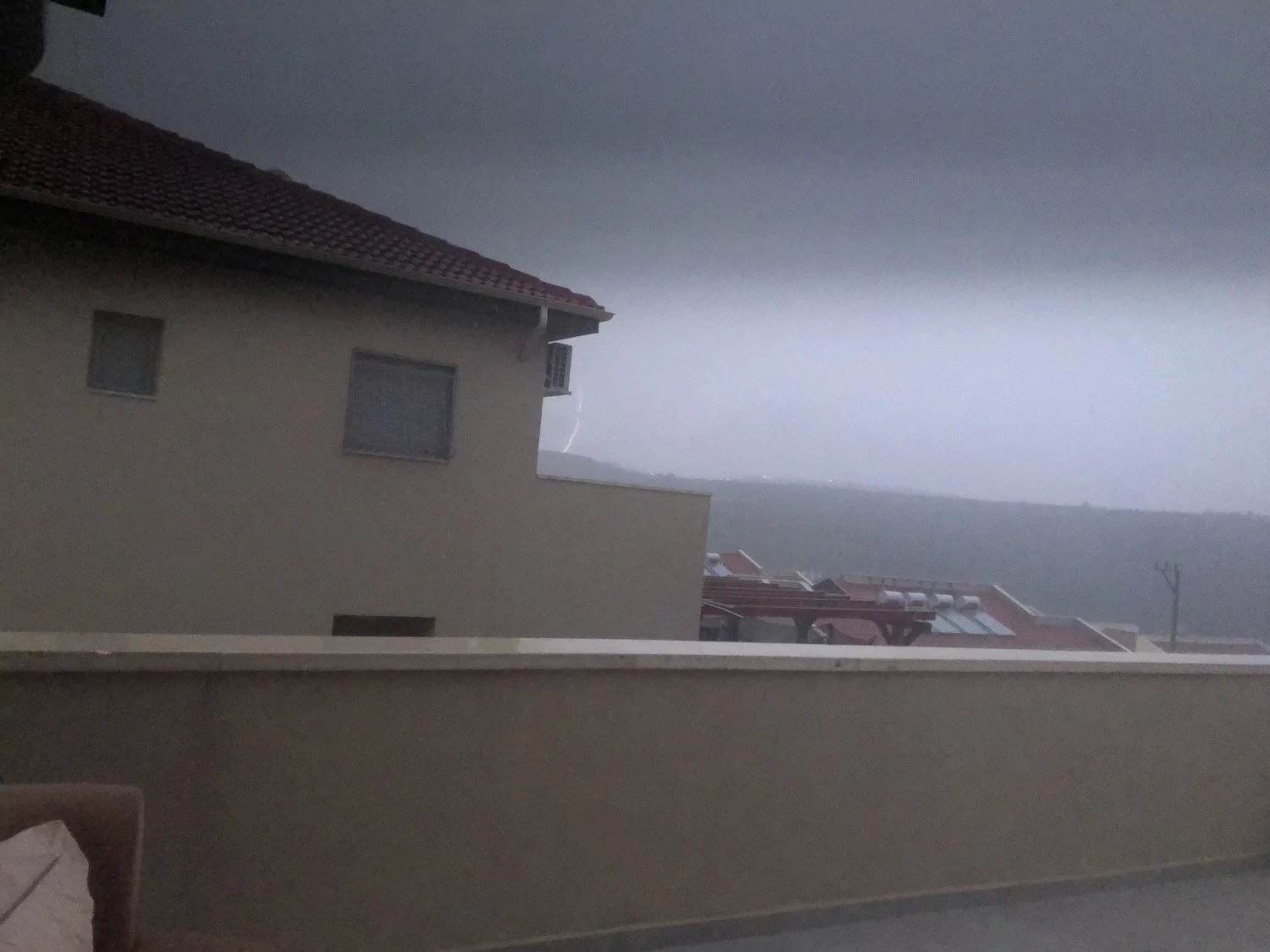 בחצי שעה האחרונה היו ברקים יפים כל כמה דקות, ואחריהם היה מטח ברד חזק.