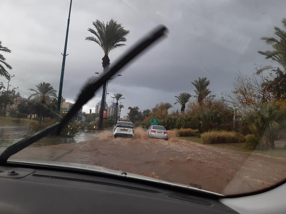 עם רעמים חזקים שבים עוד מכה בדרך לנתניה סופות רעמים חזקות נשמעים והעננים נכנסים