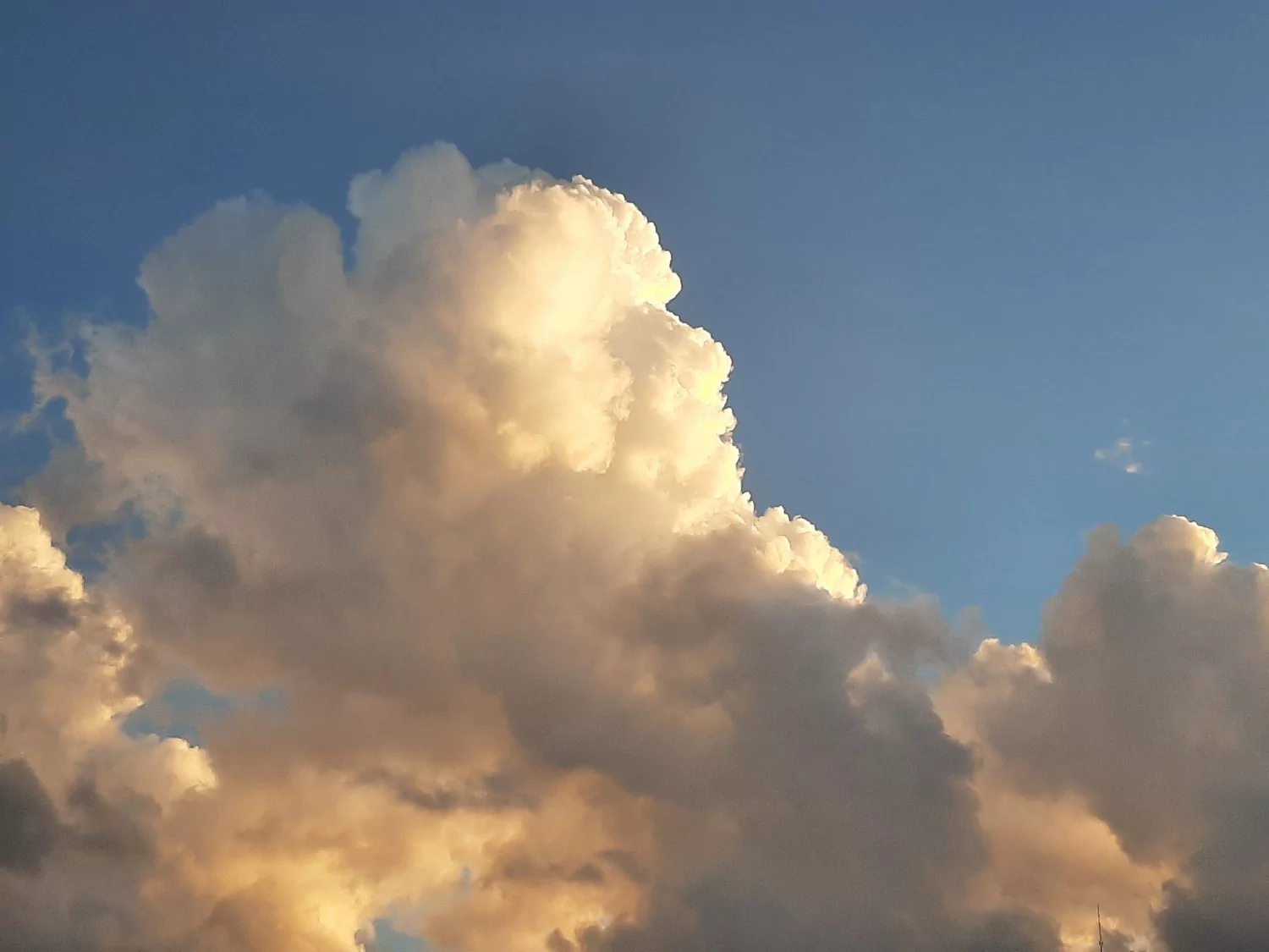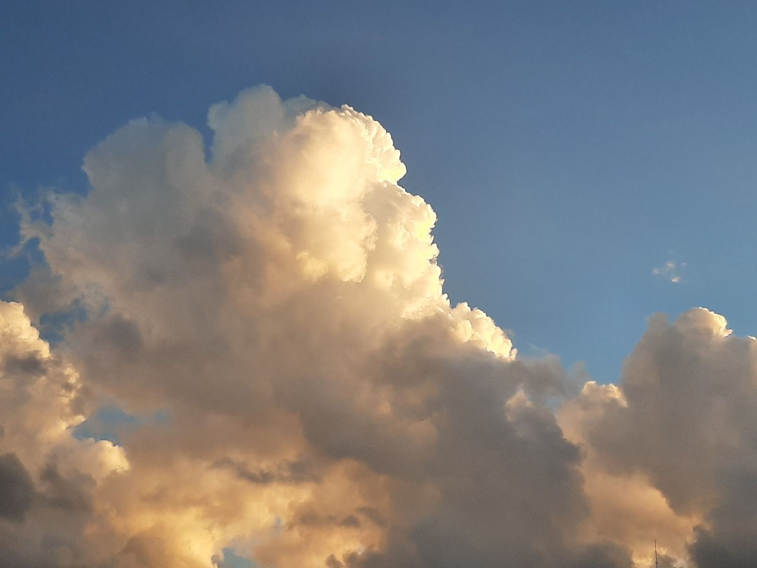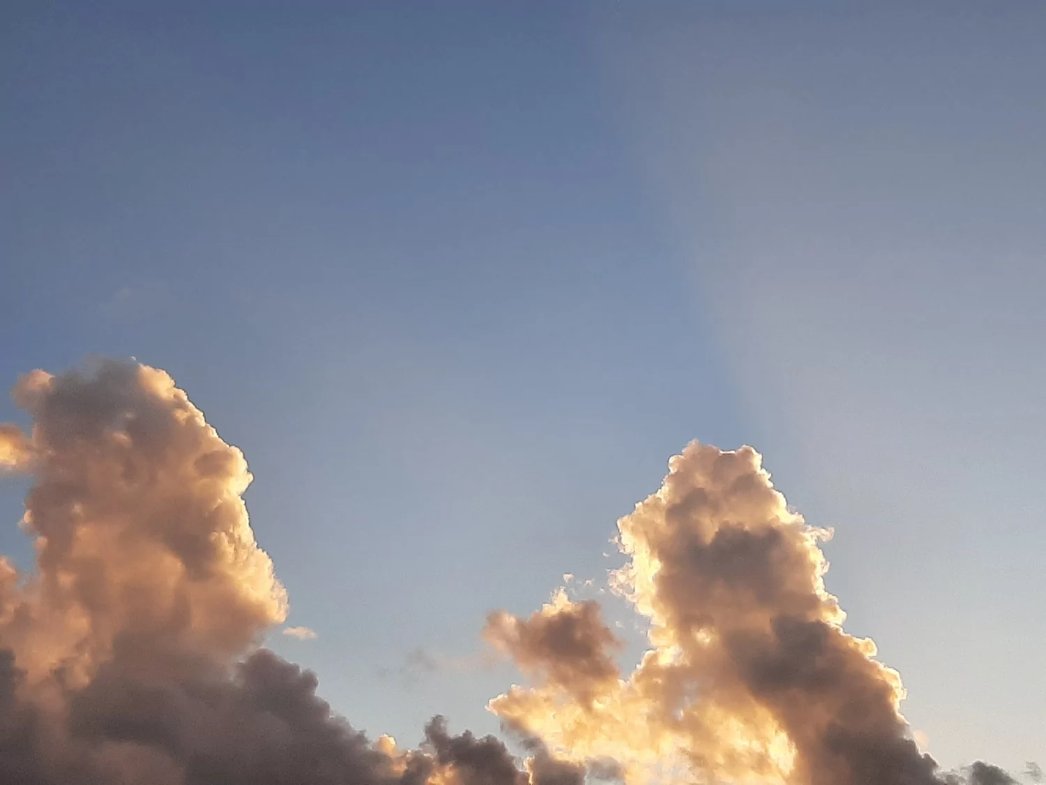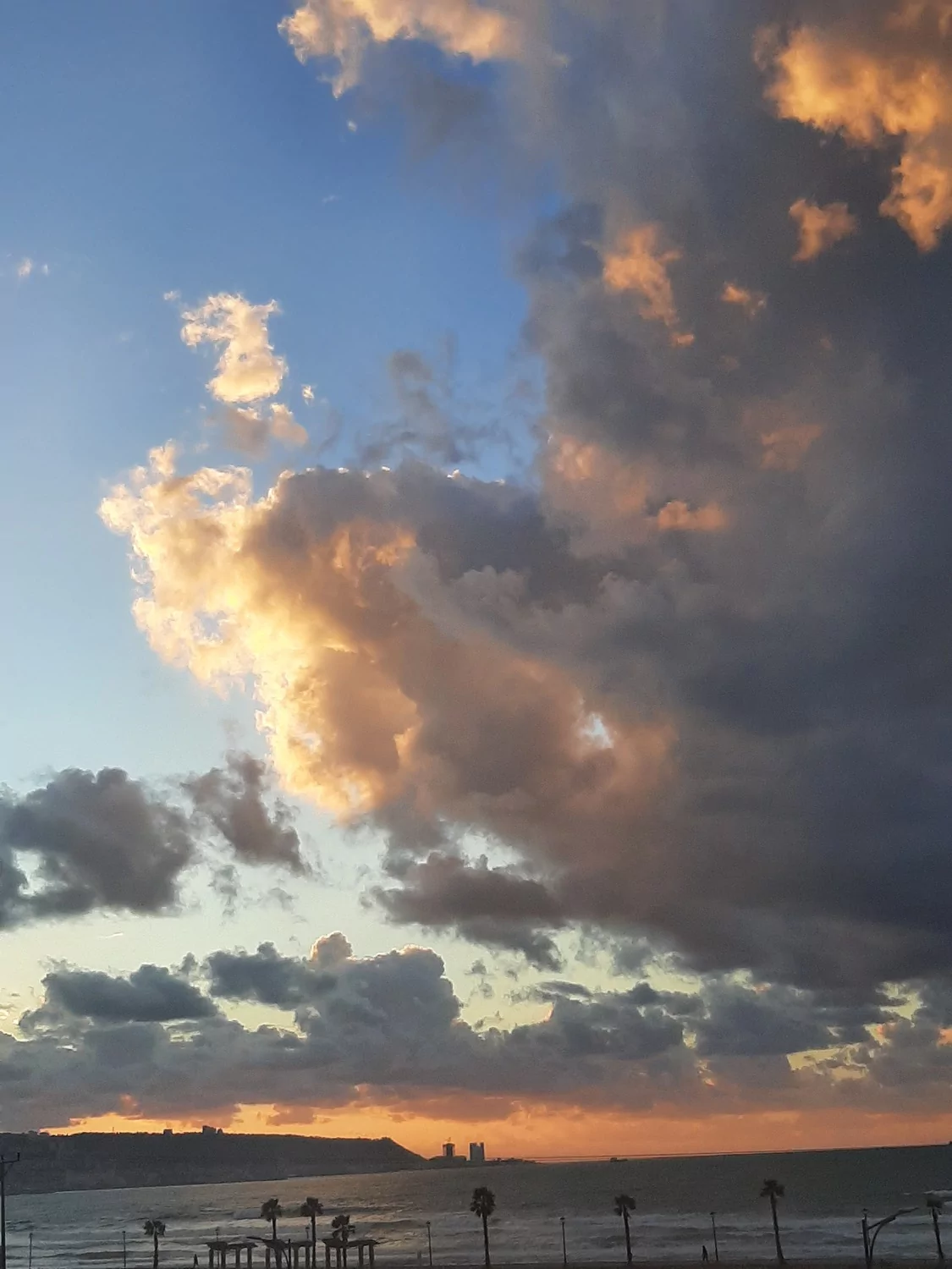 - העננים בצבעי השקיעה מלפני כמה דקות: