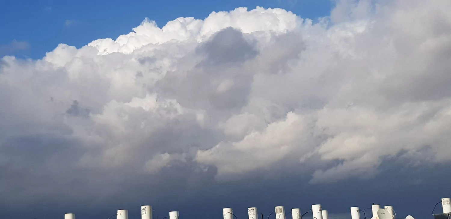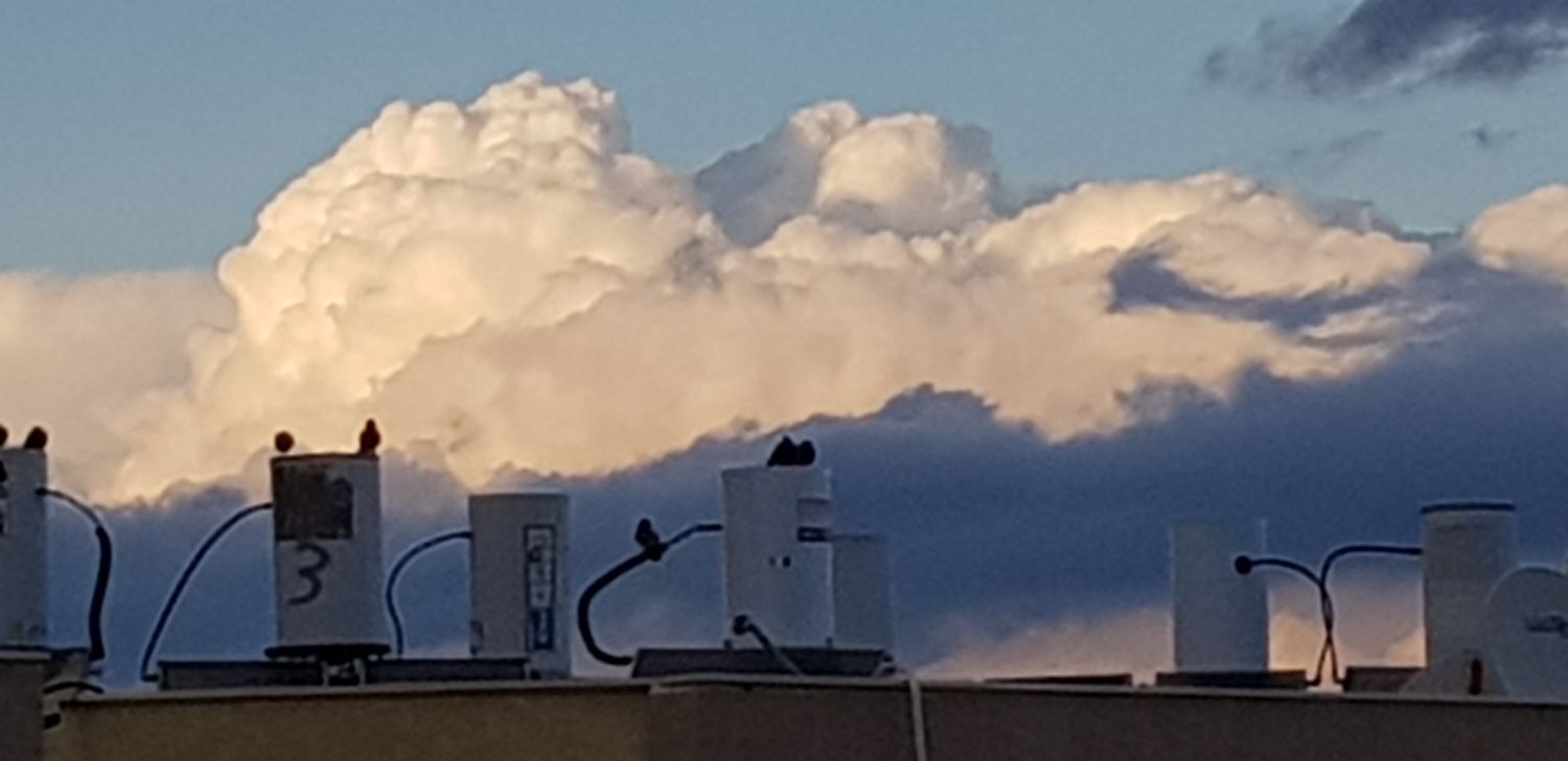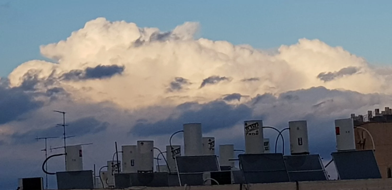 איזה ענן זה שימו לב מאחורי הבניין הגבוה של ספרית התמרים ברמת גן יש לבן זה ענן ואני לא יודע איזה ענן זה.