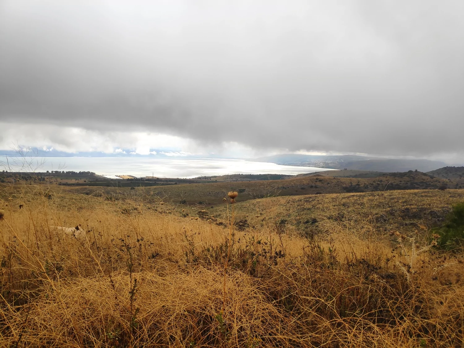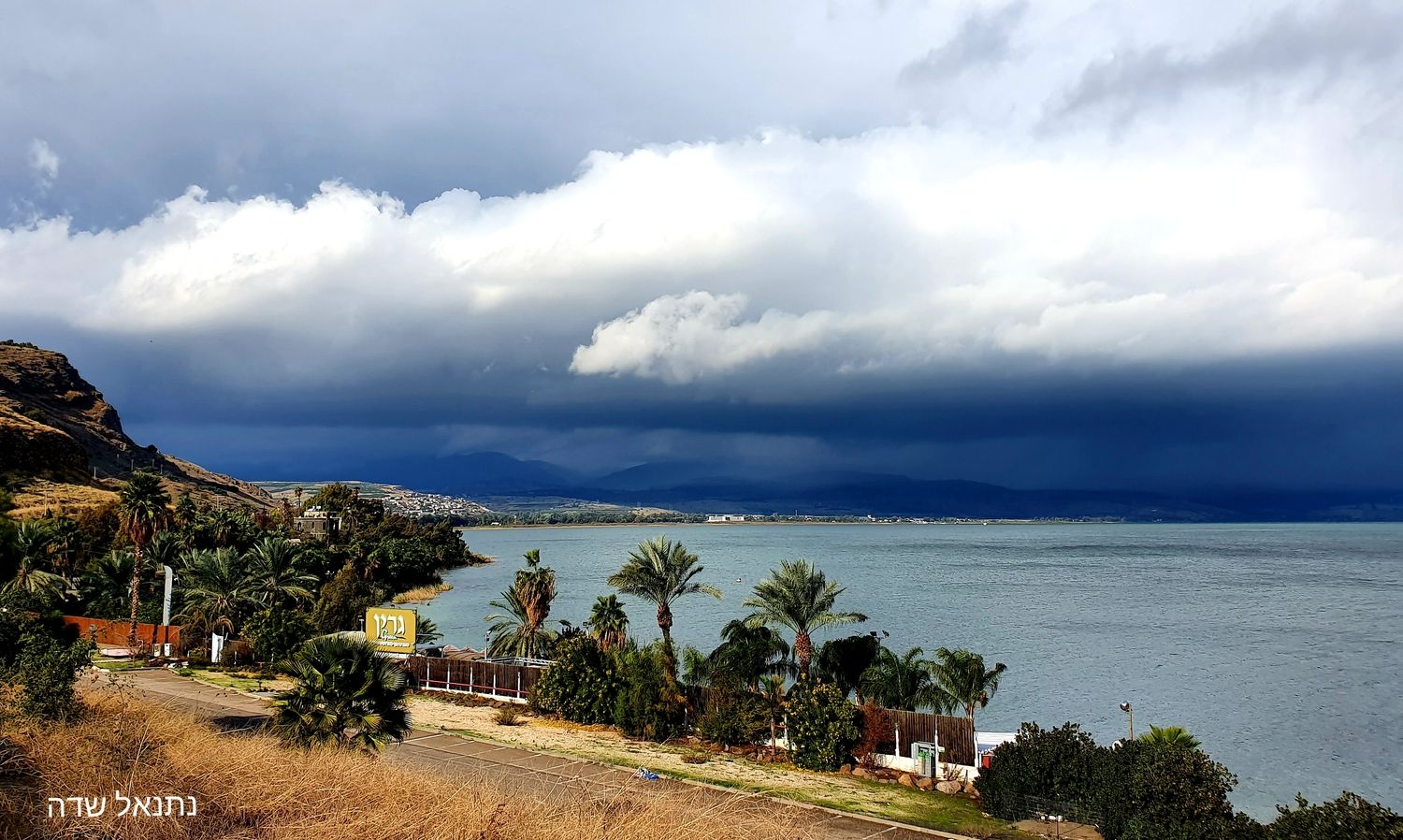 - תמונות מיוחדות במינן! העננות האפורה הנמוכה בשילוב השדה והכנרת המוארת מהשמש מתחת תום