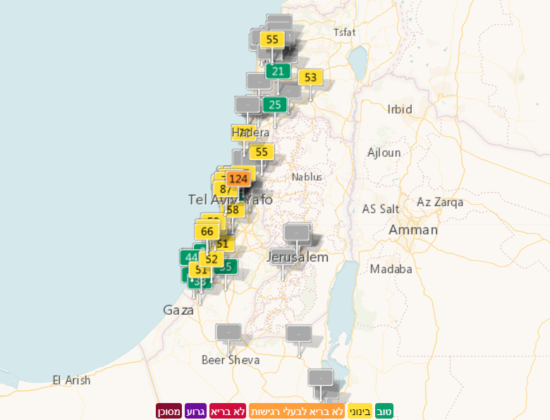 בהרצה: נתוני זיהום אוויר על גבי מפת מזג האוויר