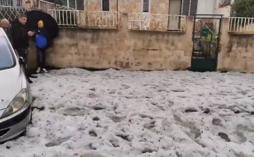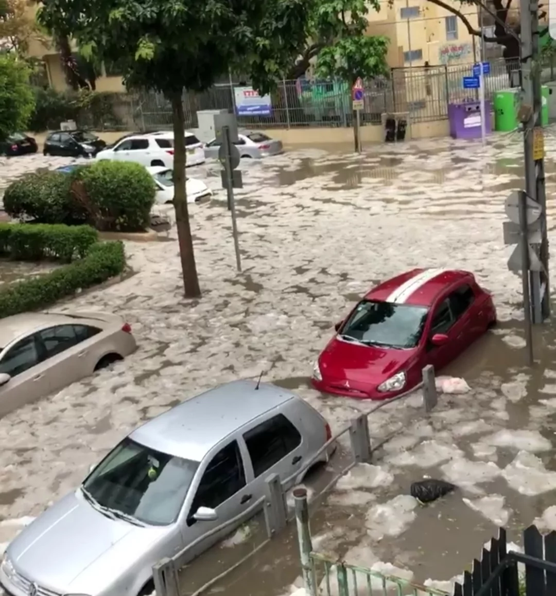 ובחצי שעה האחרונה סופת ברד כבד.