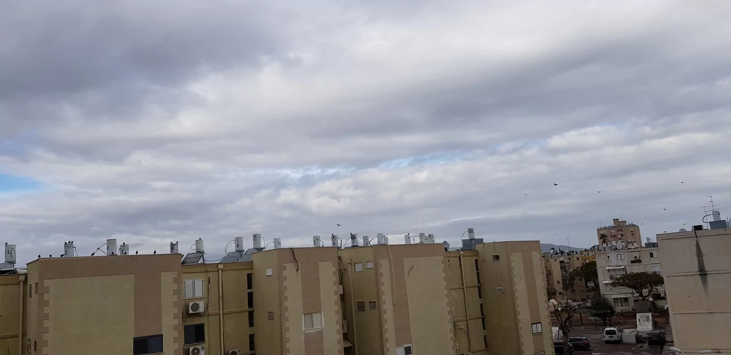 פה הצד המערבי התמלא בעננות כבדה בגווני אפור/שחור, לפי המכם גשם קל עד בינוני בדרך