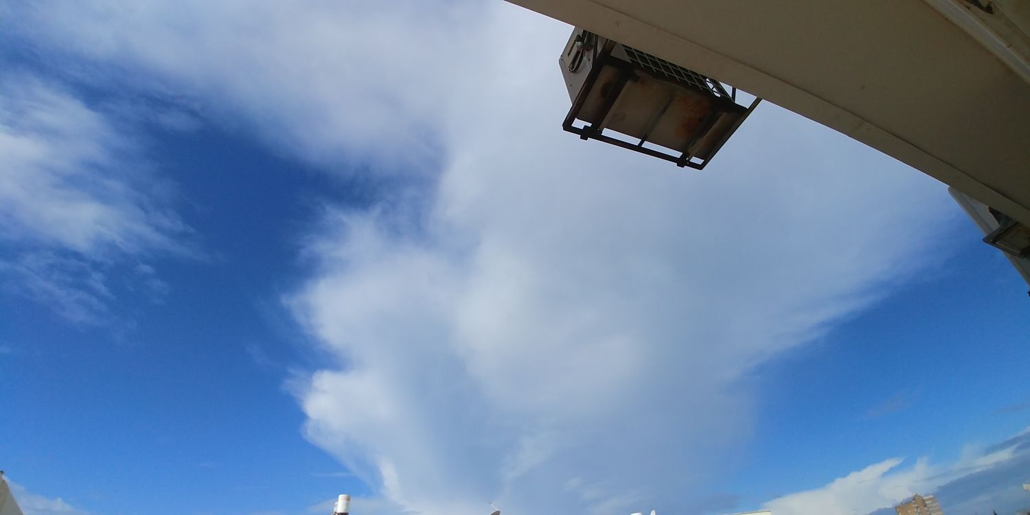 - גשם אין אבל ענני גשם יש באופק, ענן הנראה כמו צירוקומולונימבוס ממערב תום