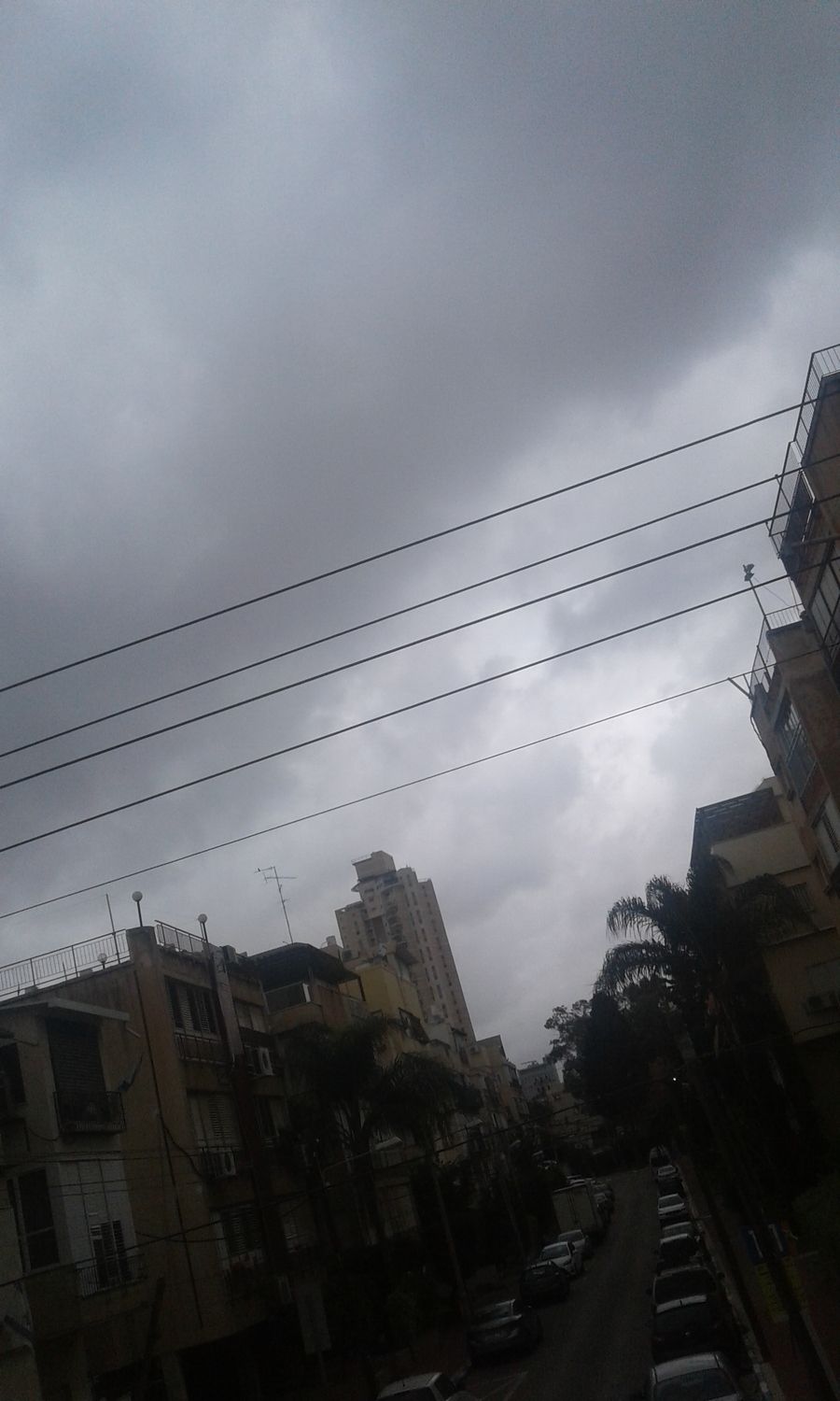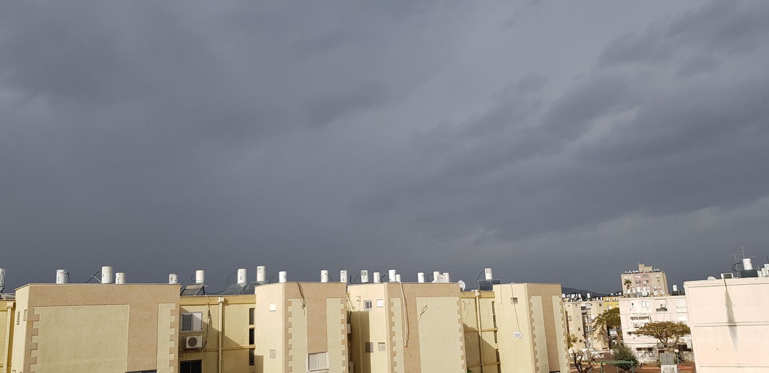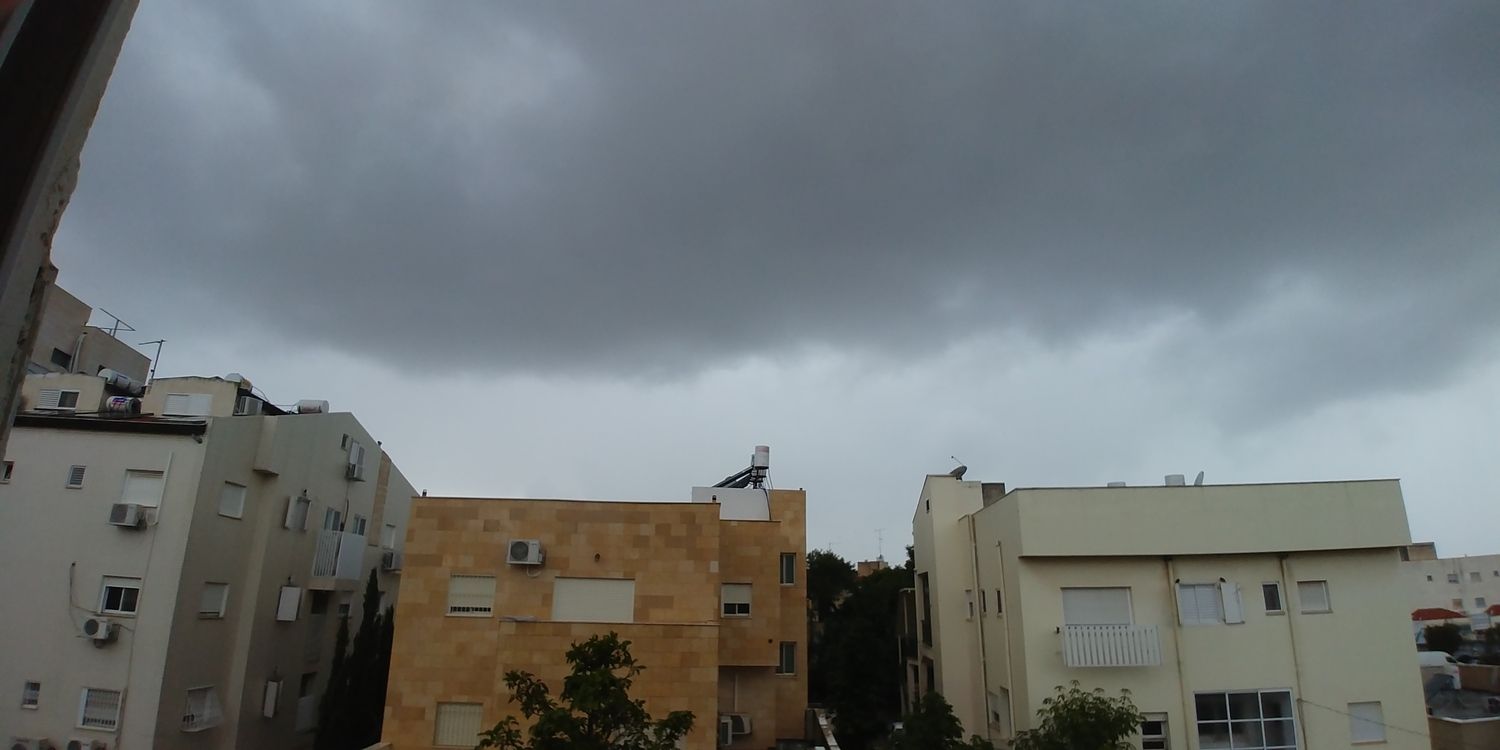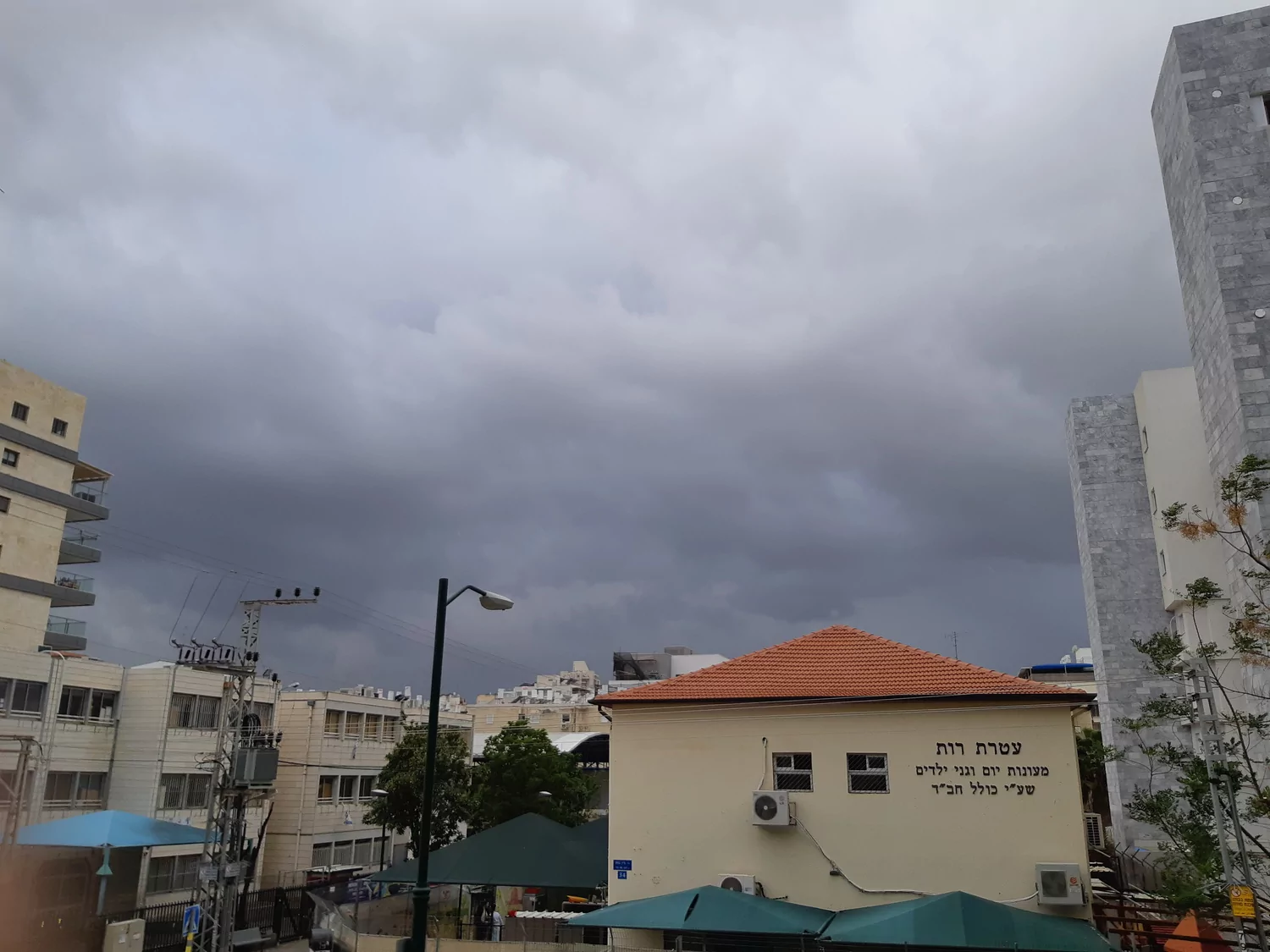 עדכון; הגשם פסק, כעת חשוך ועם עננים שחורים בשמיים.