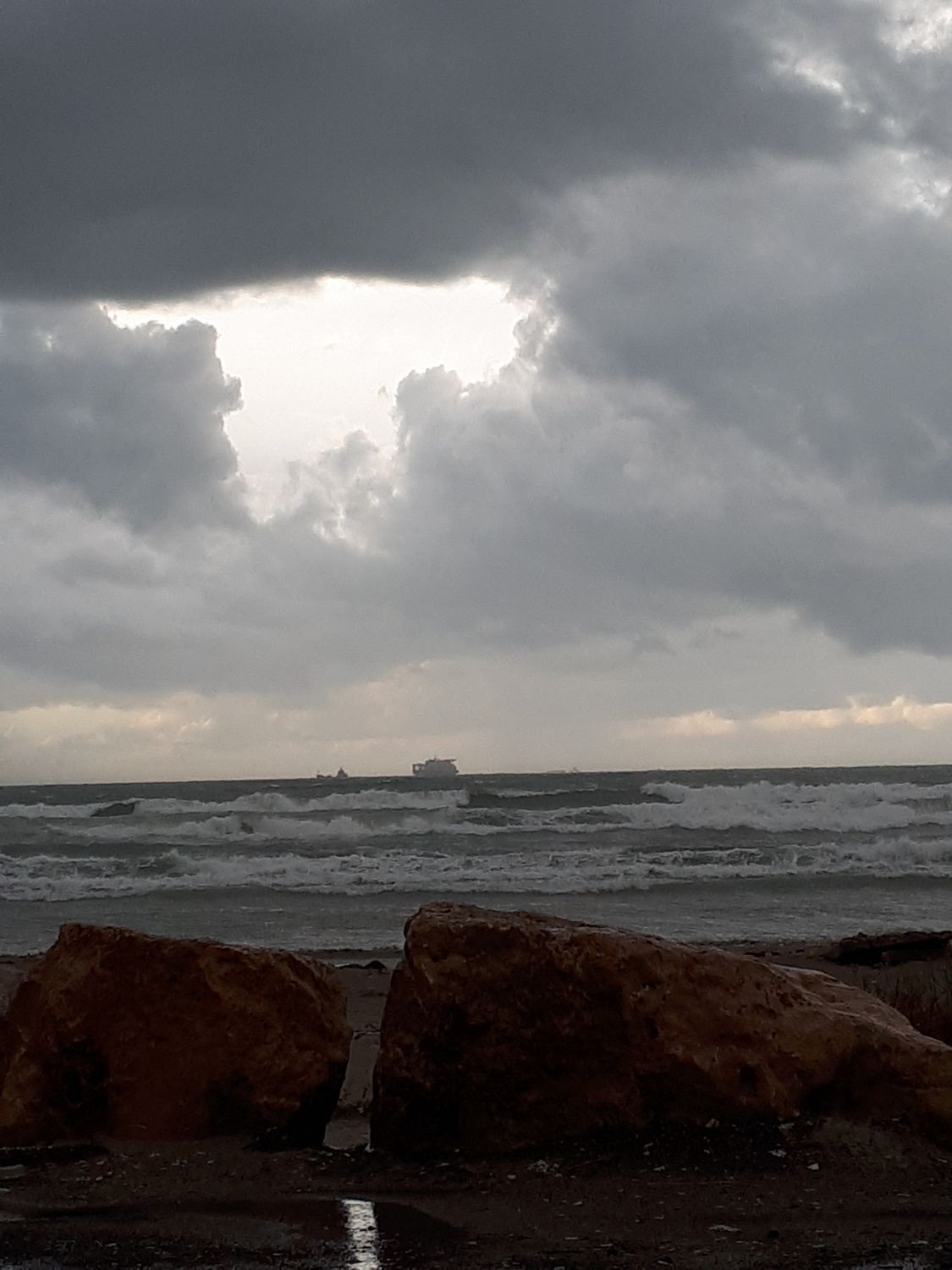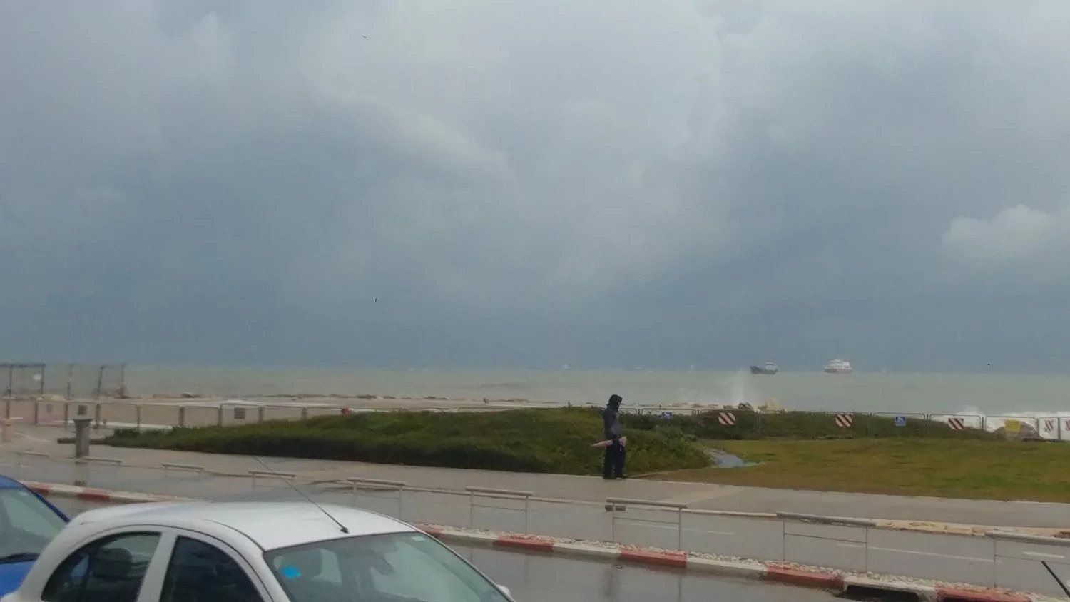 - בחוף אשדוד רוח 50 קמש עדיין יבש,האוניה עדיין במקומה:)) נועם