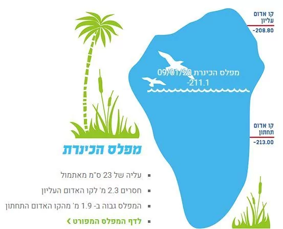 - הכנרת עלתה בעוד 2 ס"מ במדידה של 10 כעת 211.08 שלמה