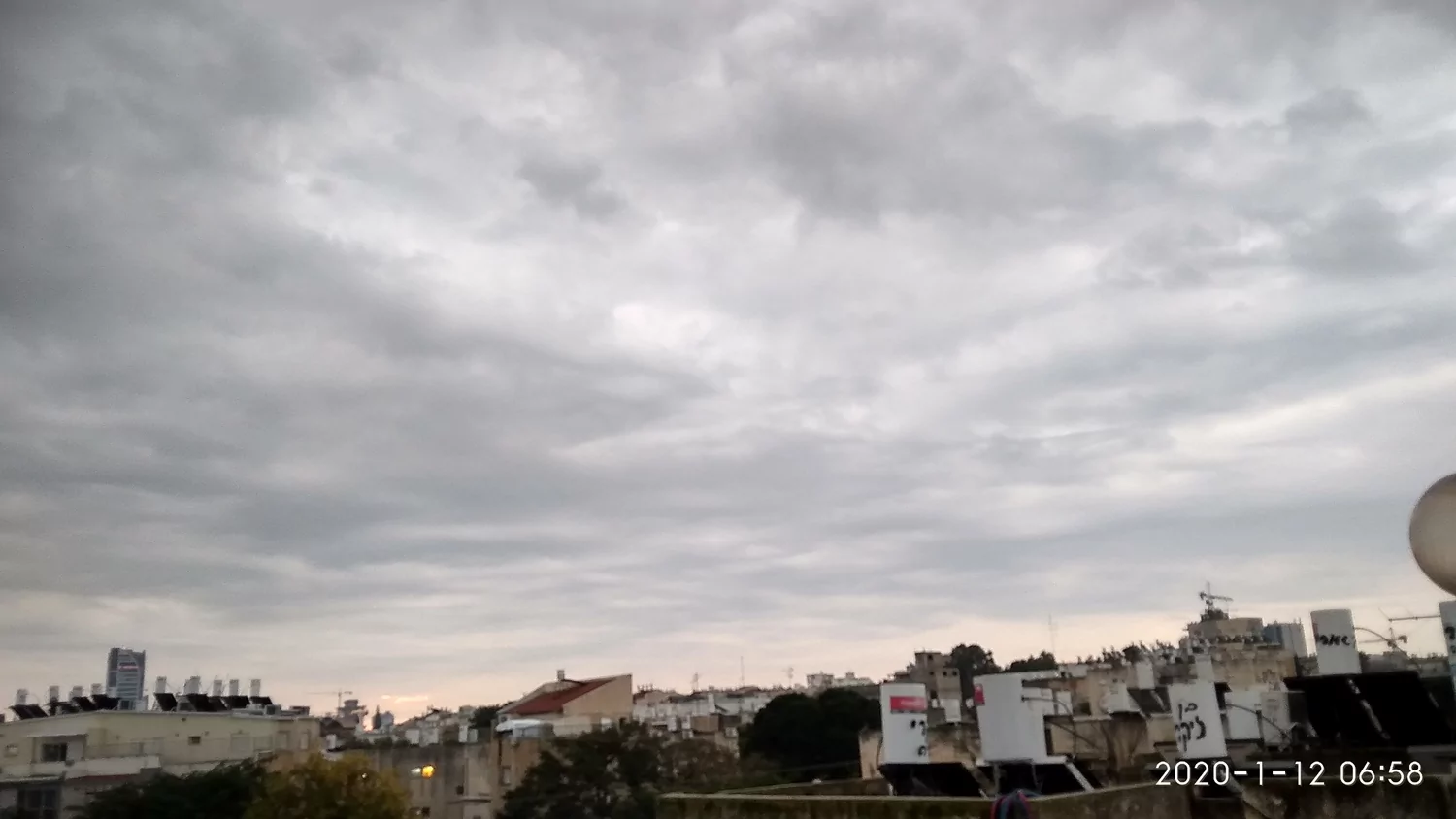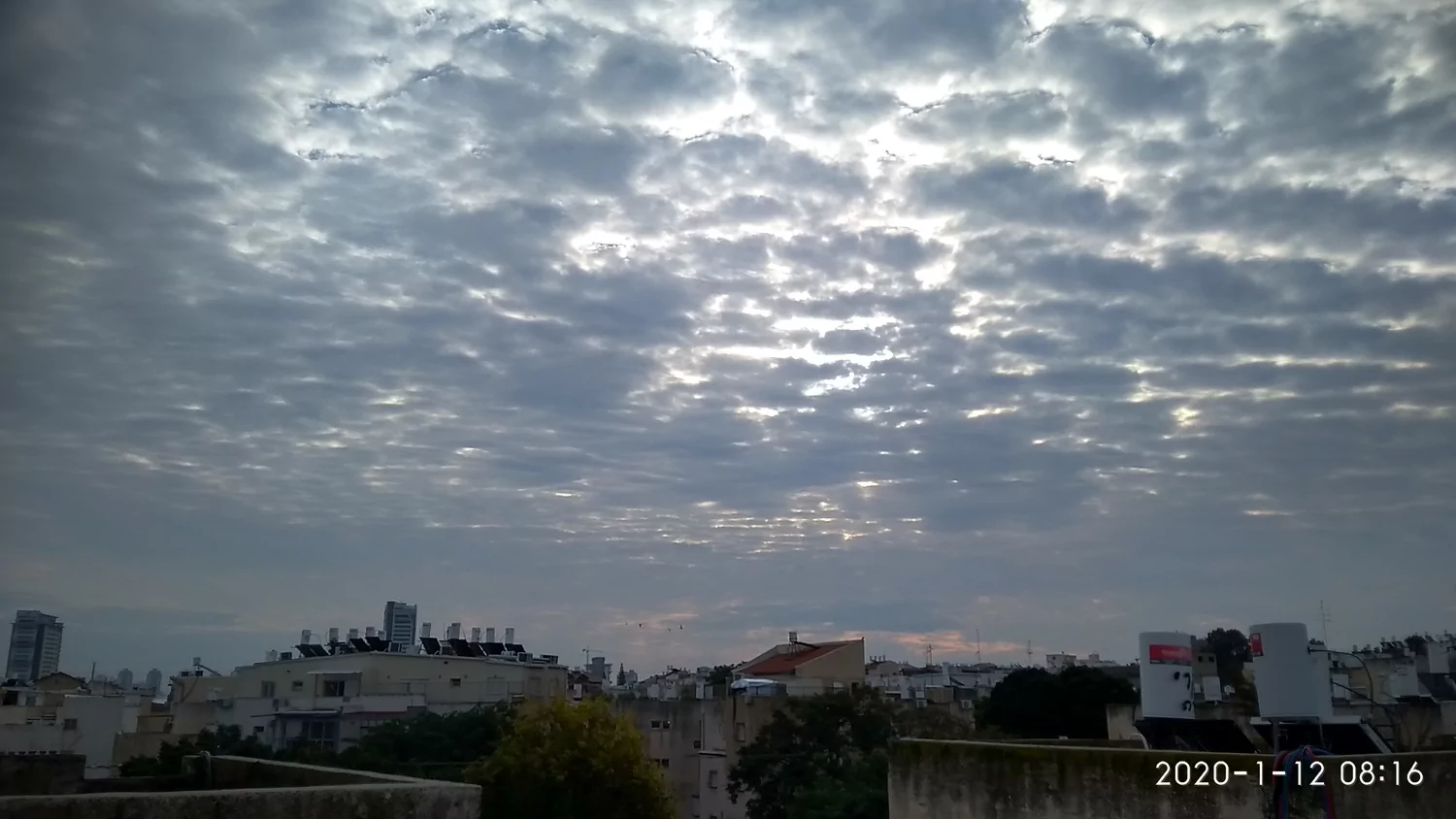 העננות הכבידה שהיתה כאן מעל האיזור בתחילת הבוקר (ואף גרמה לטפטוף קל לכמה שניות) פינתה את מקומה לעננות בינונית.