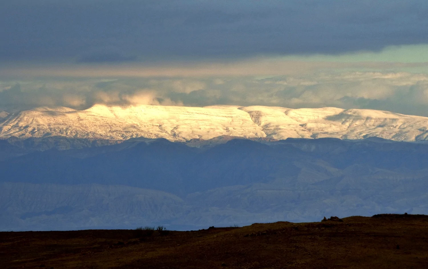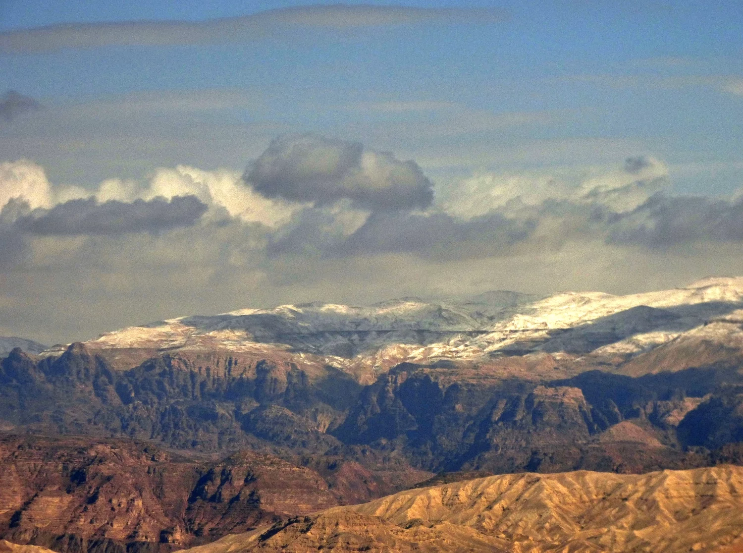 על ההר הגבוה ביותר ליד עקבה, הר באקיר , יש מעט שלג על הפסגה. גובה ההר 1600 מטרים.