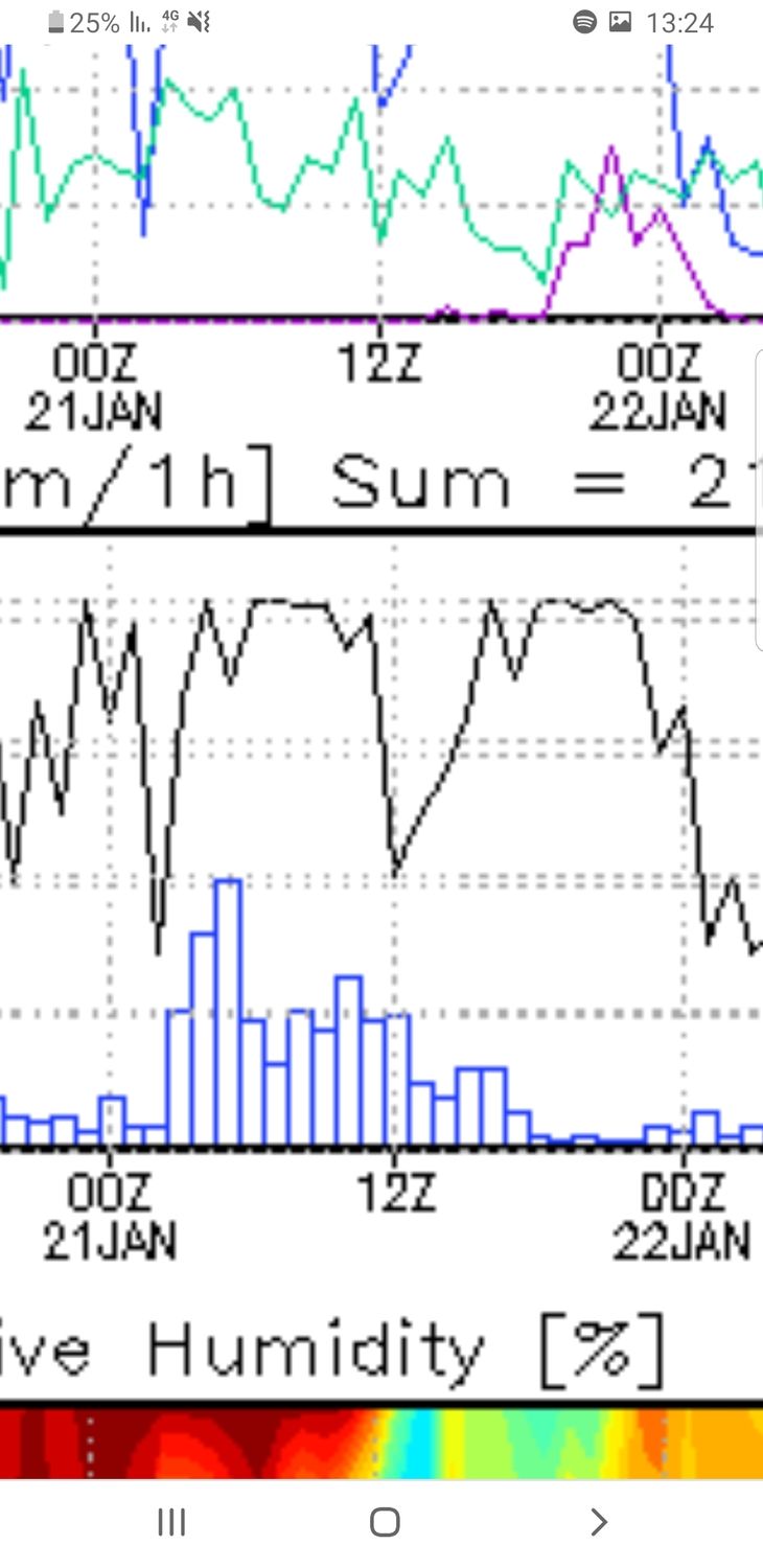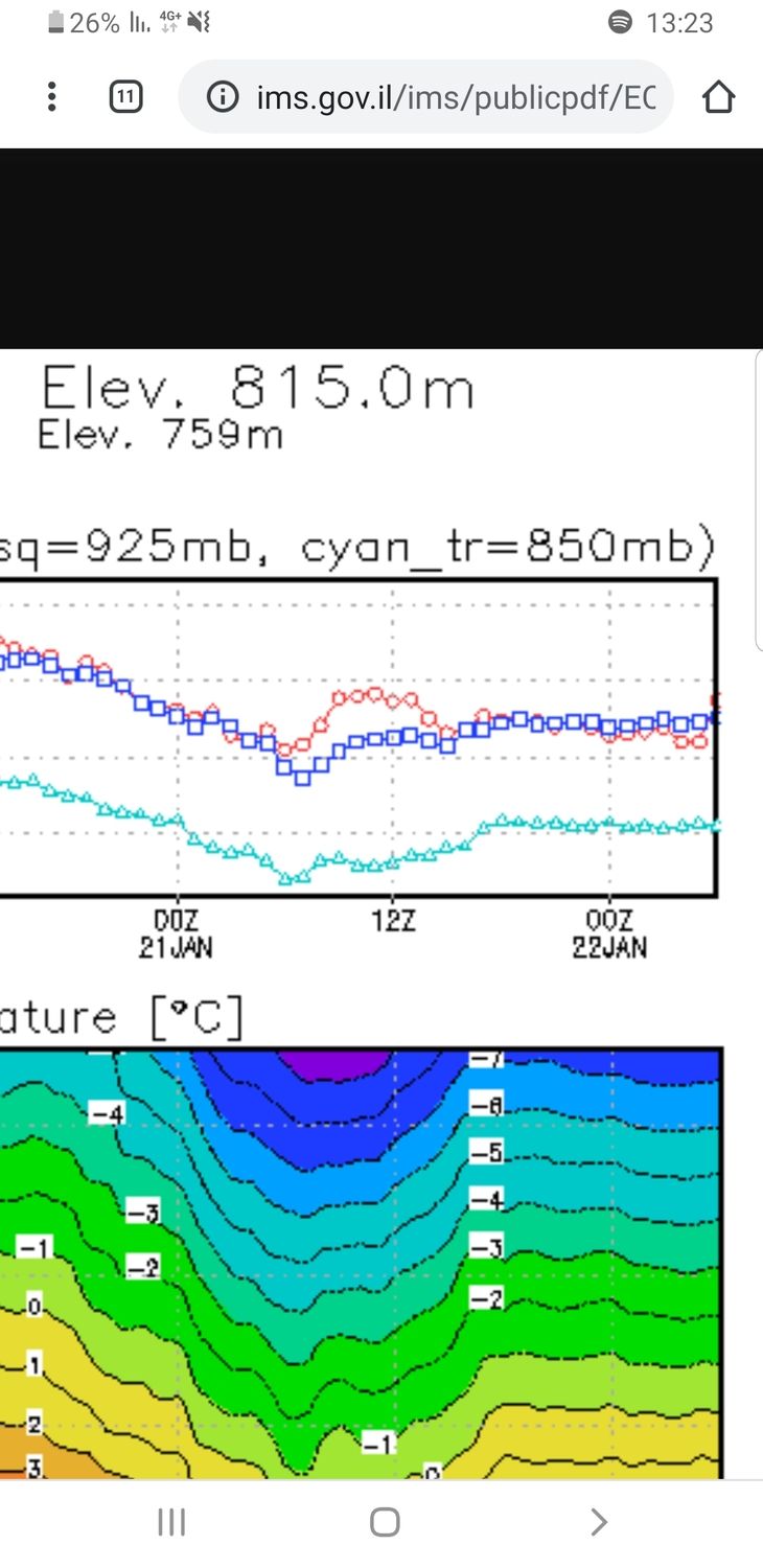 אפשר לראות שצפויים משקעים ובמקביל הטמפרטורה ב-850 יורדת למשהו כמו 3 שעות מתחת למינוס 2.5 .