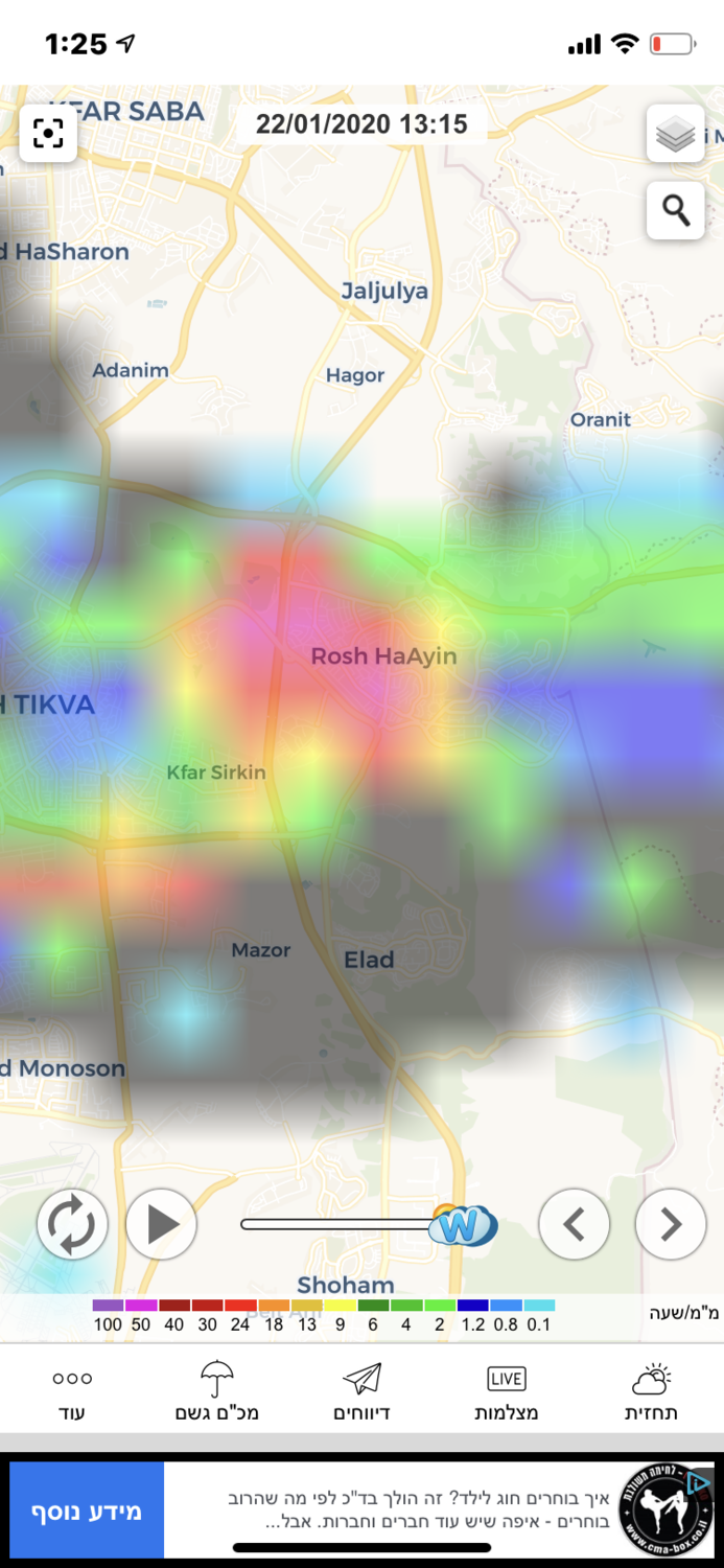 - גשם החל בעכו ולפי המכם יורד גשם מאוד חזק באזור תל אביב עדי טולדנו