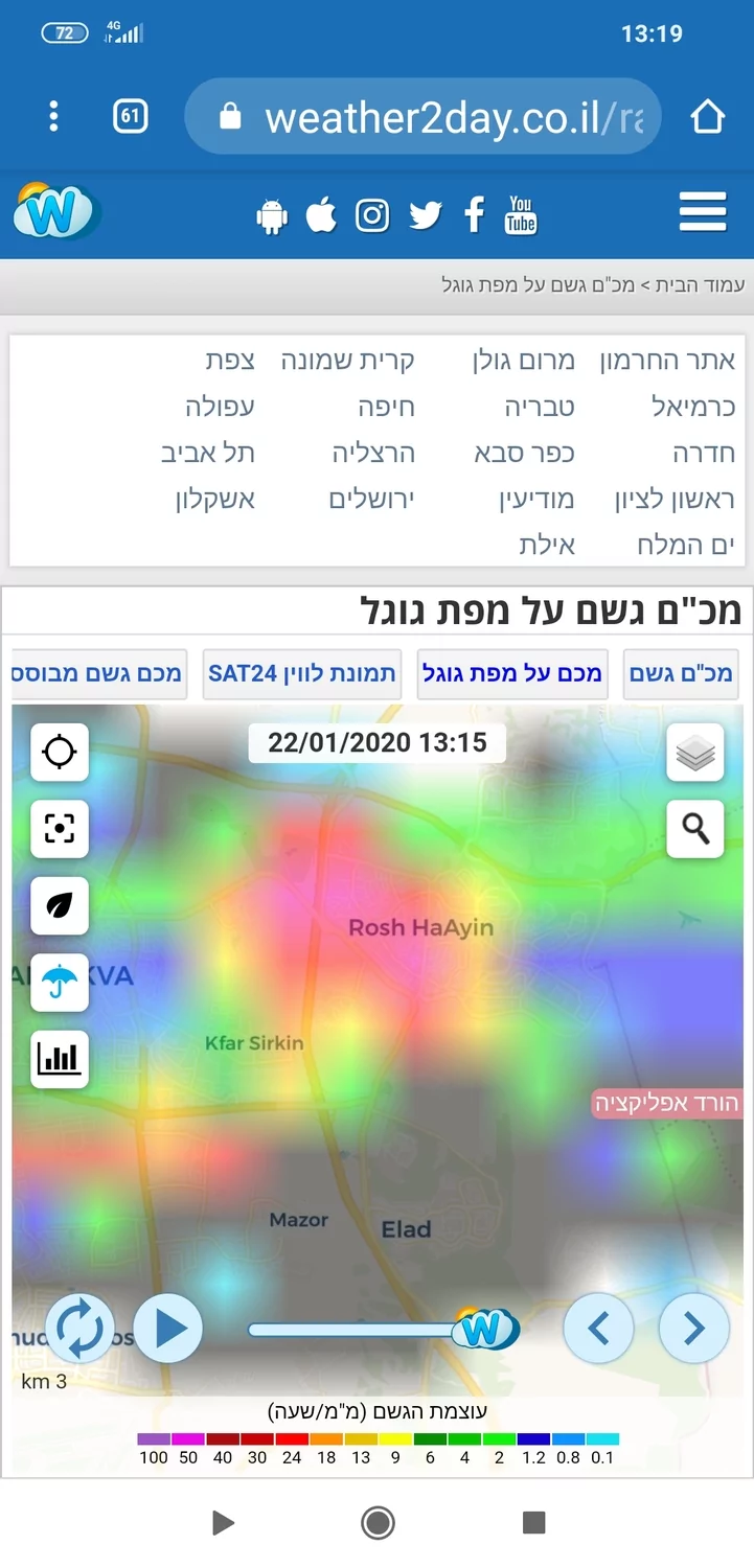 - דיווחי מזג אוויר - יום רביעי 22/01/2020 Weather2day