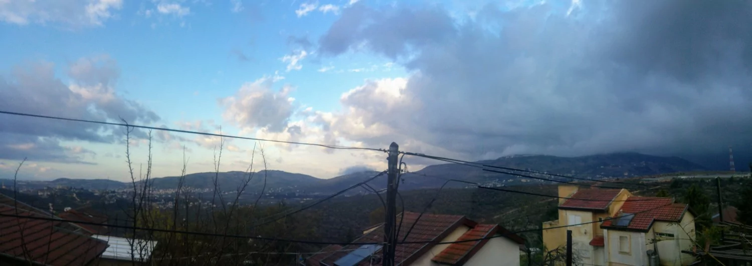 הר עיבל עם ענני סערה והר גריזים בהיר. מכם מול מציאות