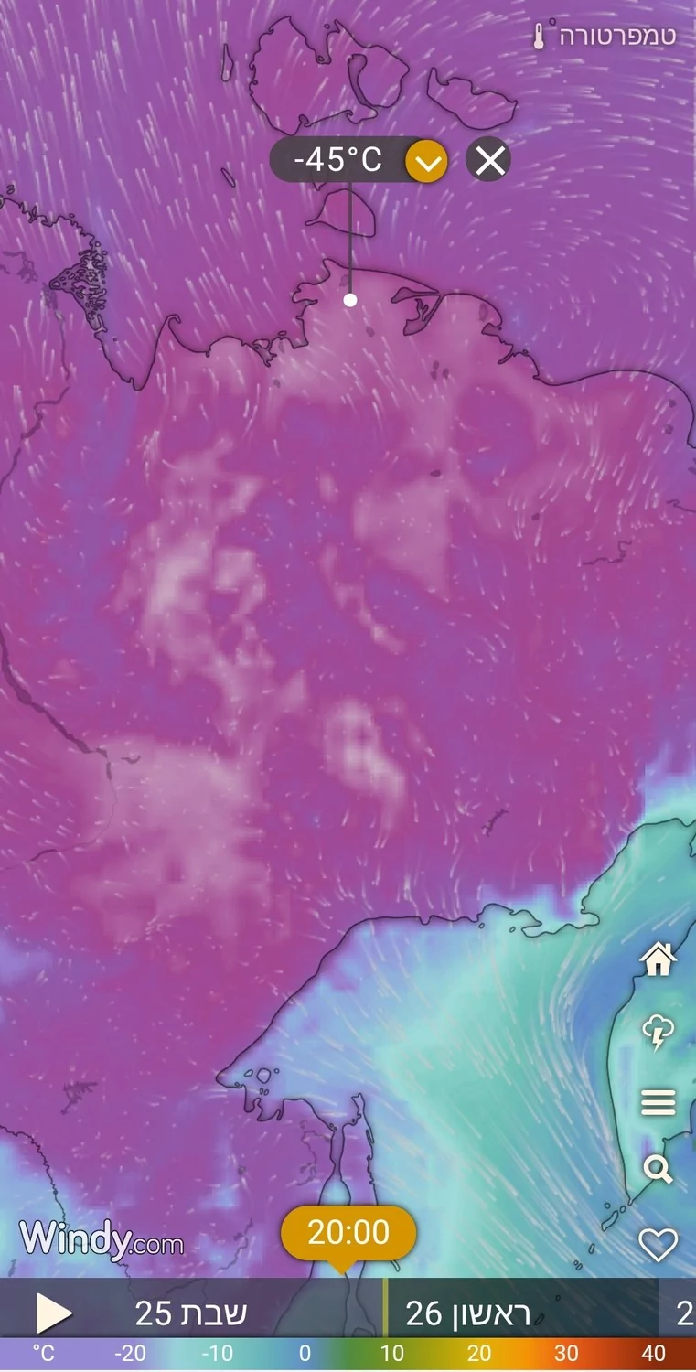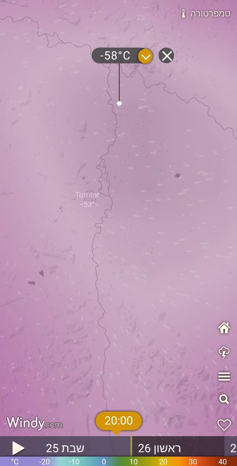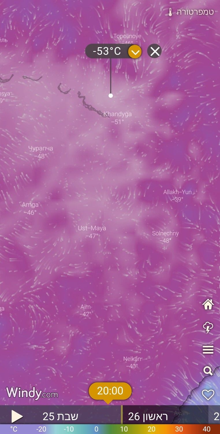 - לפי ECMWF הטמפרטורה הנמוכה ביותר היום בסיביר היא כ-58- מעלות