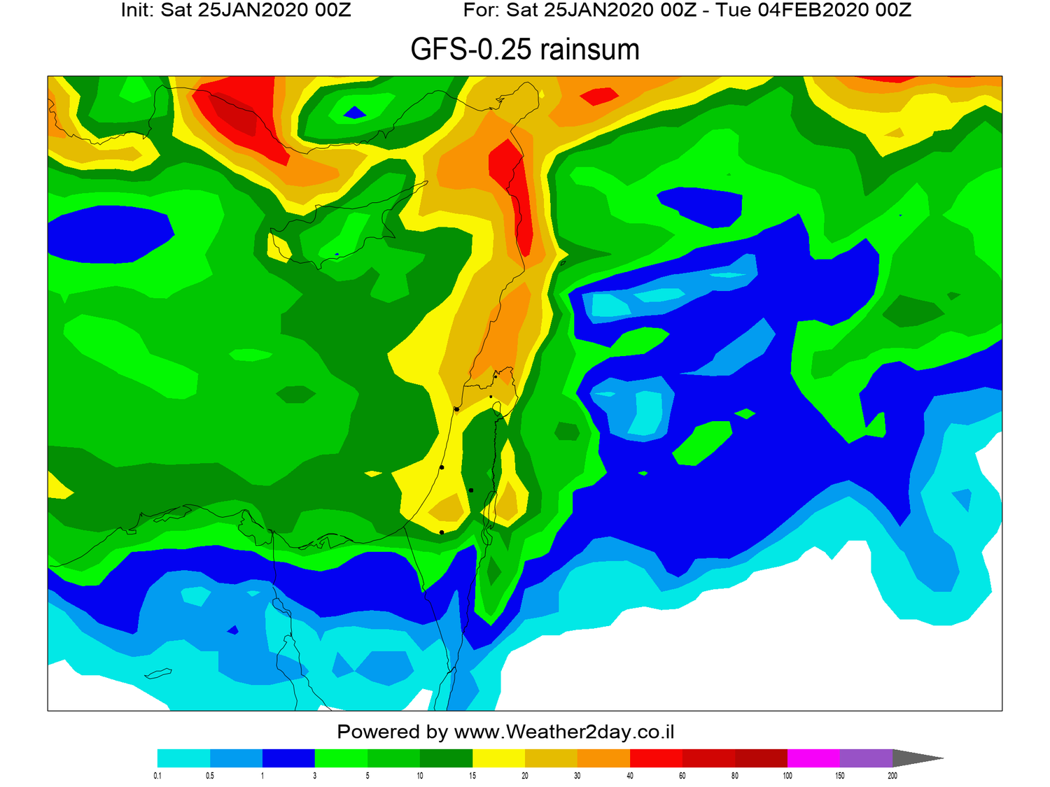 - עדכון בוקר של GFS צופה מערכת קרה עוד כמעט עשרה ימים, אך כמויות הגשם קטנות יחסית