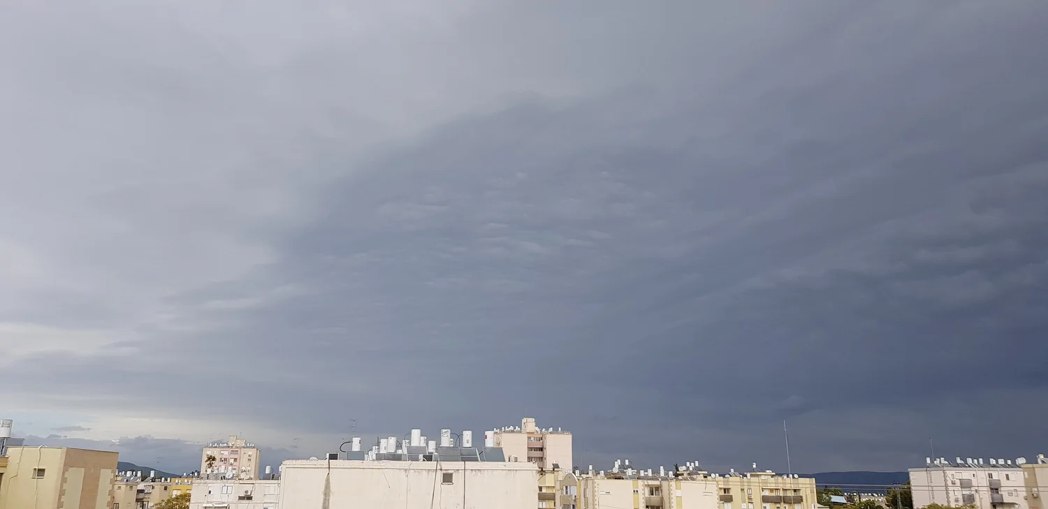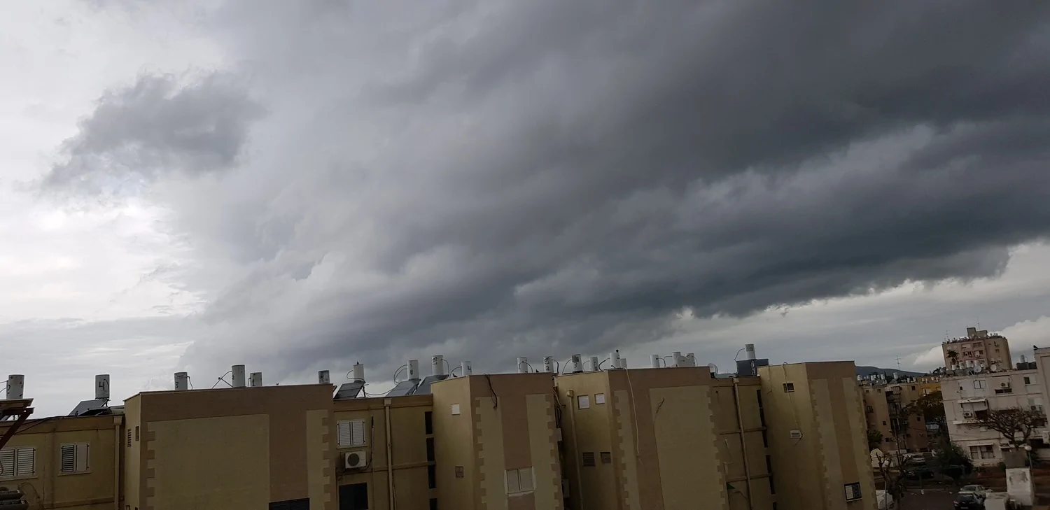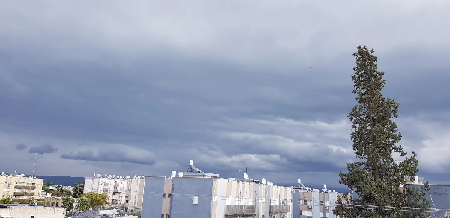 - עננים אפורים וכבדים מתקרבים רותם