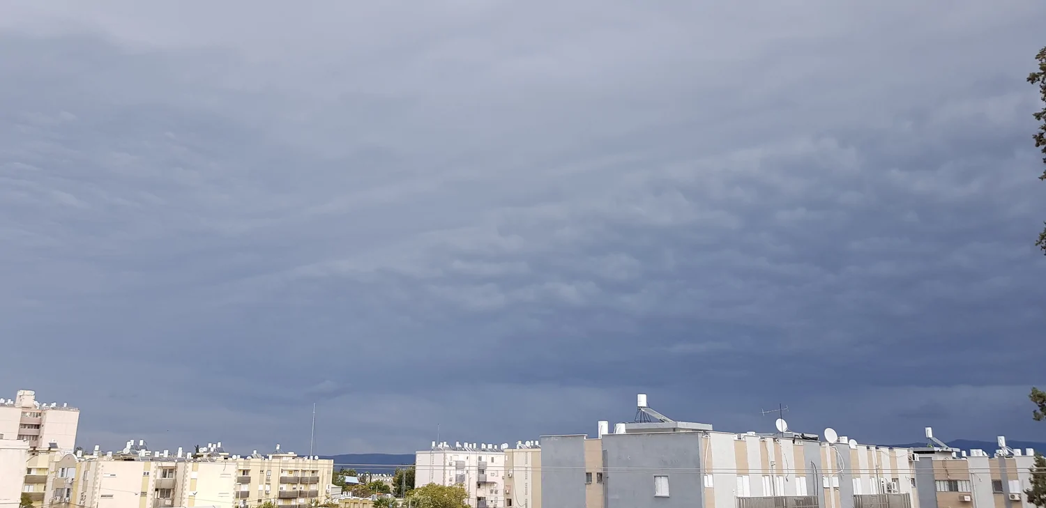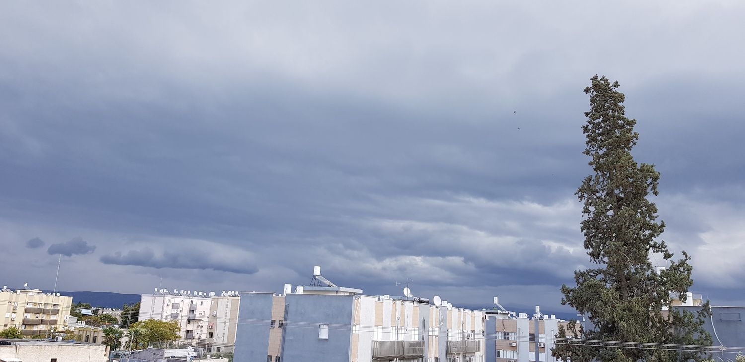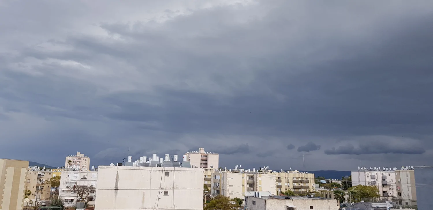- עננים אפורים וכבדים מתקרבים רותם