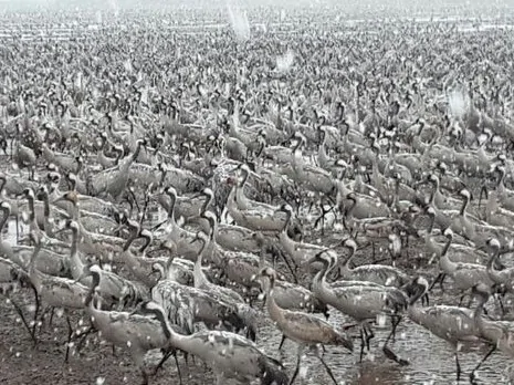 - עגורים בשלג - אגמון החולה 2015 אמליה