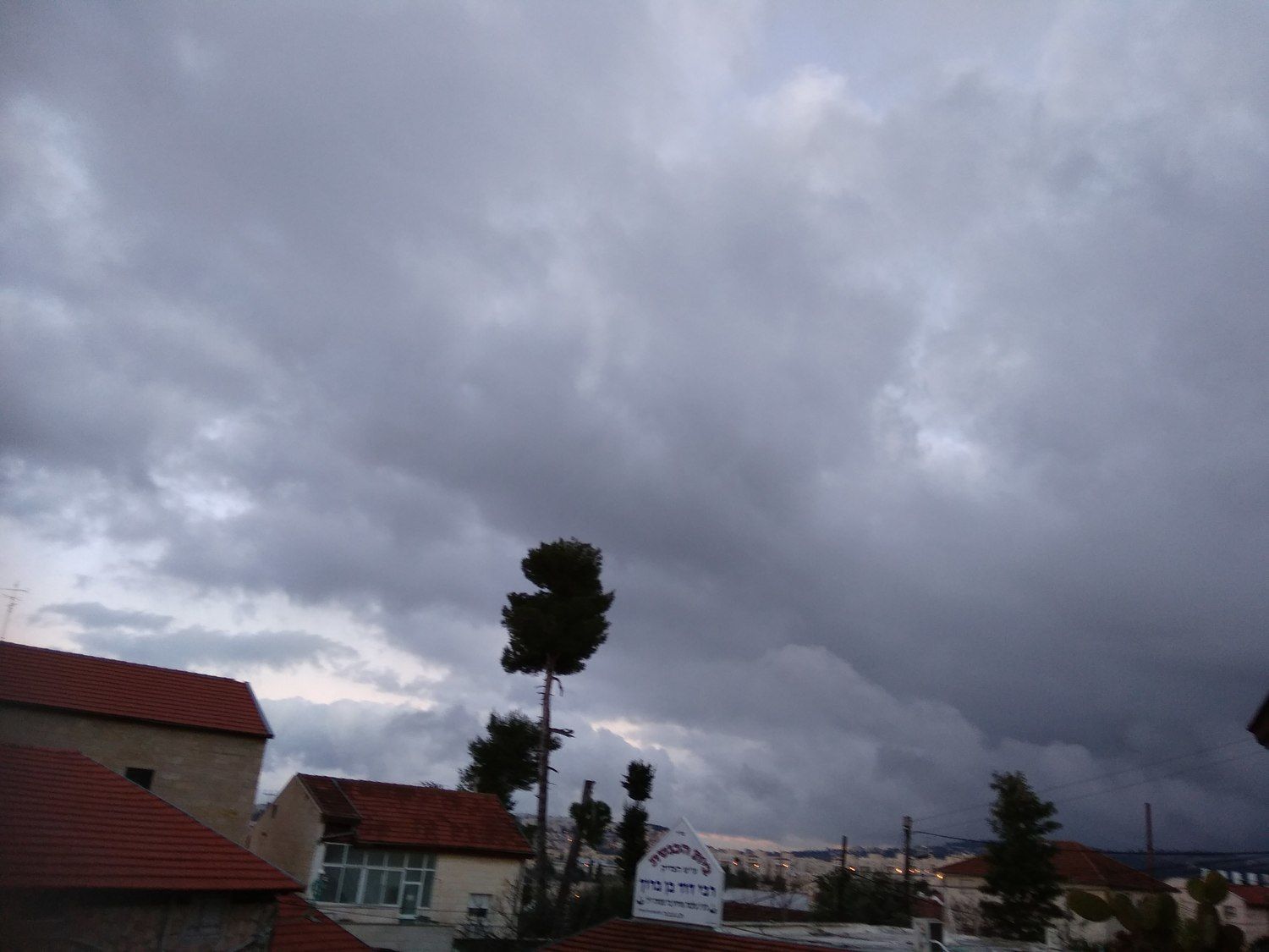 זרימה חזקה ברחובות.כמה שכבות עננים .נראה לי שהפעם אנחנו בבועה טובה לעומת היישובים מסביב.מוכן שזה יירד בירושליים וכך יהנו שם מכמות שלג משמעותית