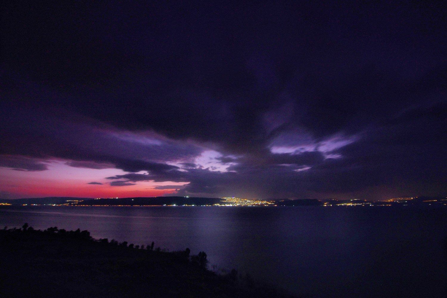 על הדרך צילמתי את השקיעה מהמיגדל אור לכיוון טבריה