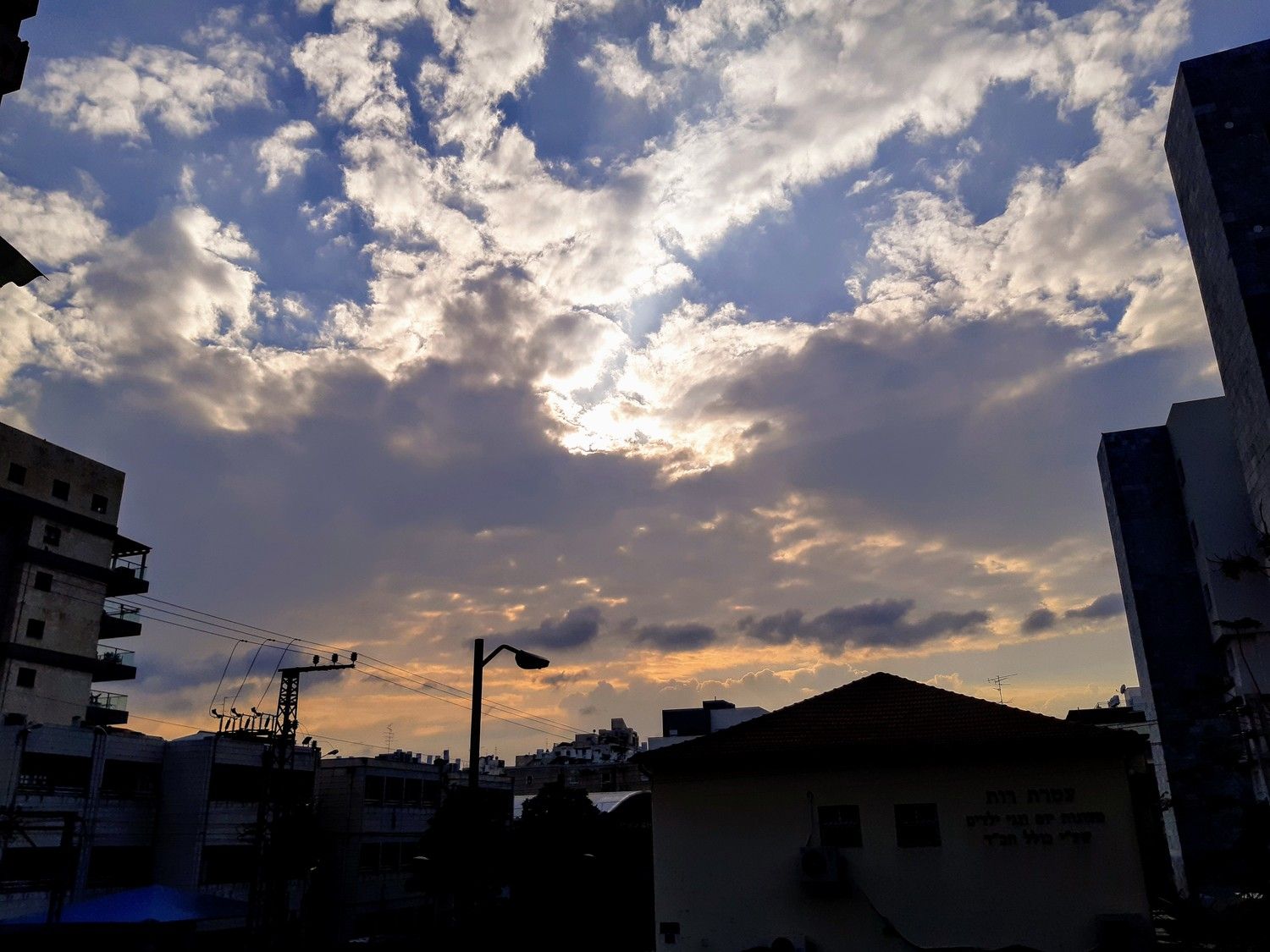 ממש לפני מספר דקות בודדות כמו כל בוקר גם הבוקר השמיים מקושטים בעננים