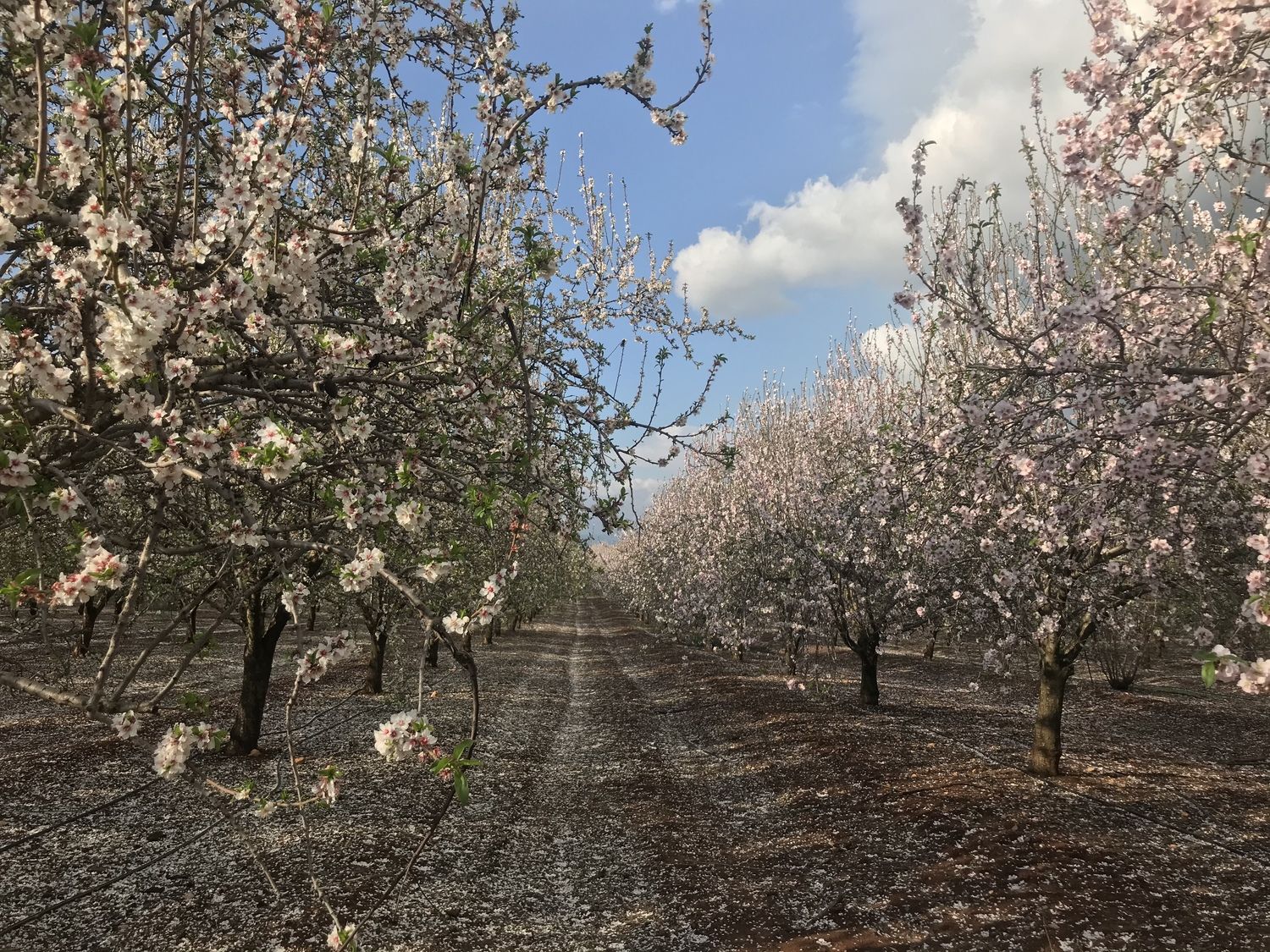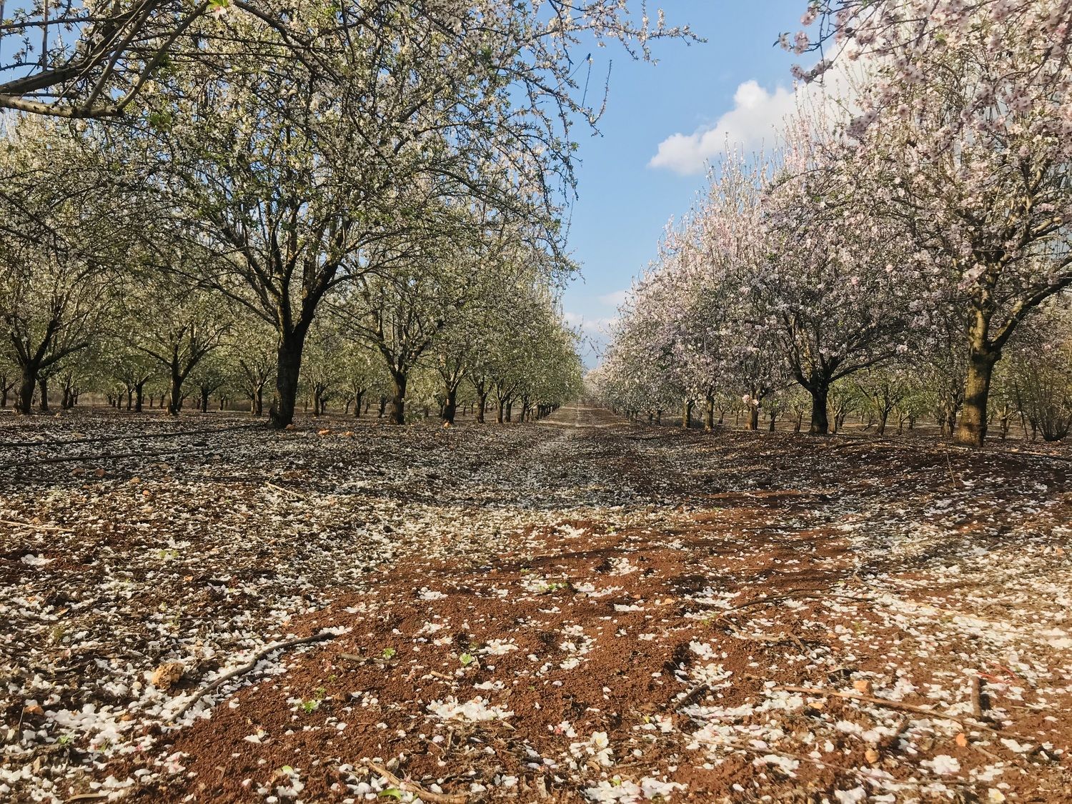 מטע שקד בעמק החולה לאחר הרוחות העזות אתמול