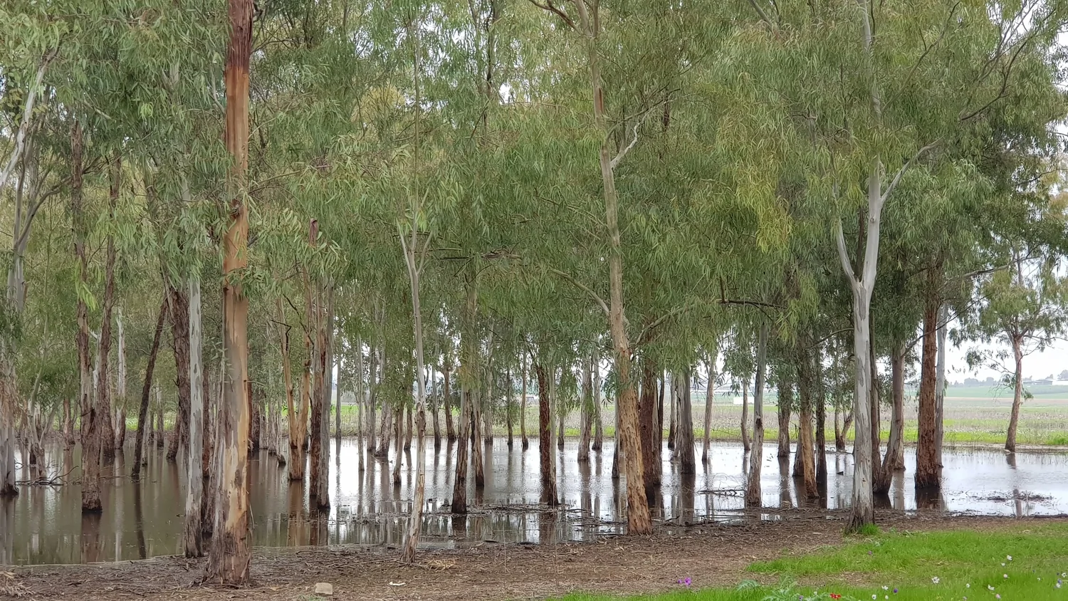 מנחת מגידו היום. כלניות ושלולית חורף
