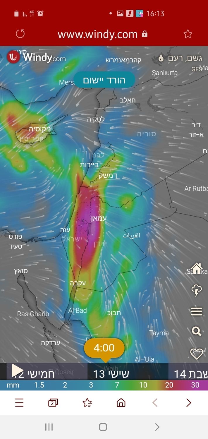 - בעיקר בדרום- מזרח הארץ, סיכוי ! שמרכז- וצפון הארץ לא יושפעו כמעט. אמליה