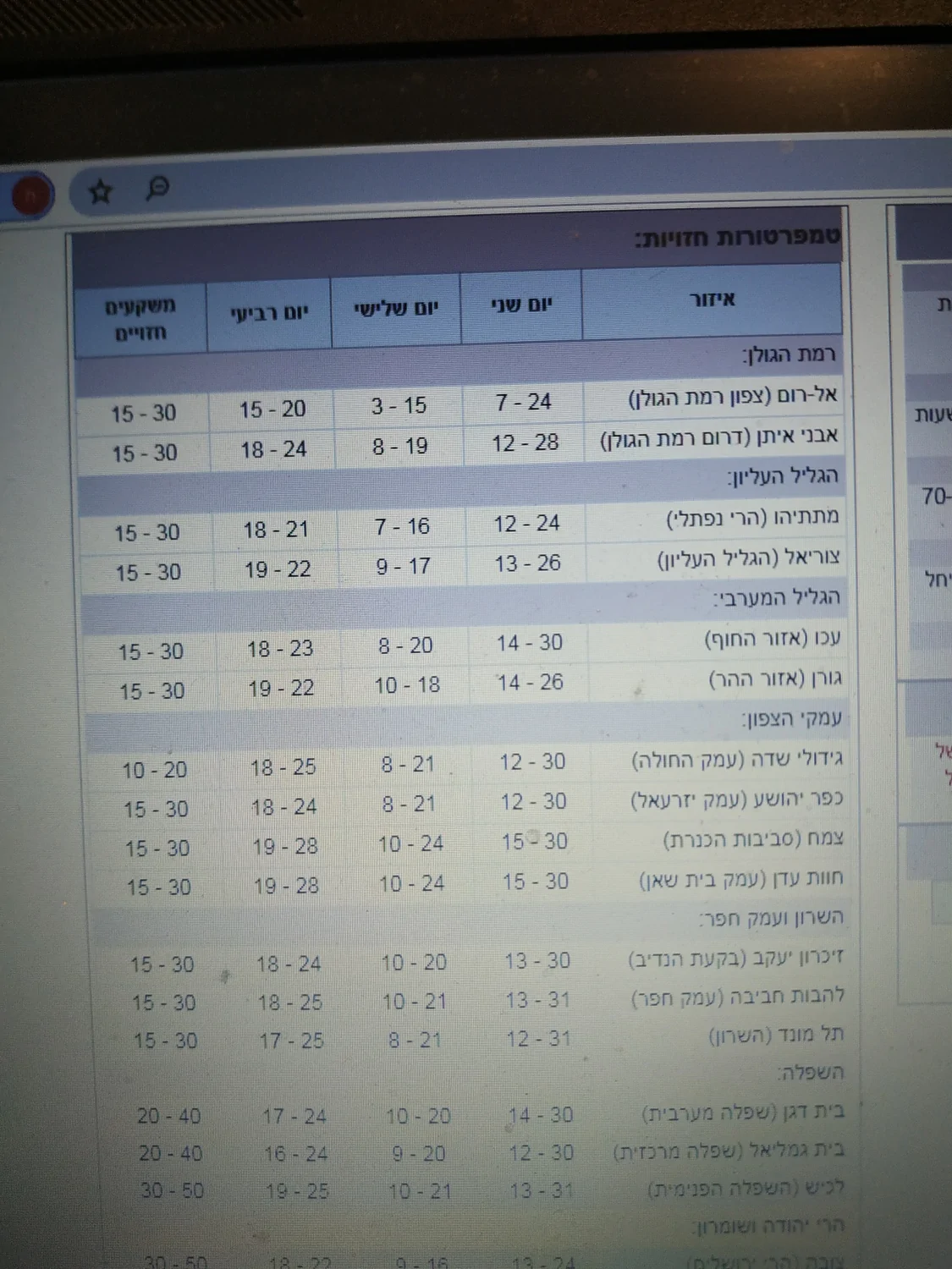 ניקח את החלק האופטימי בחיזוי משרד החקלאות: כל הרי המרכז וכן השפלה הפנימית