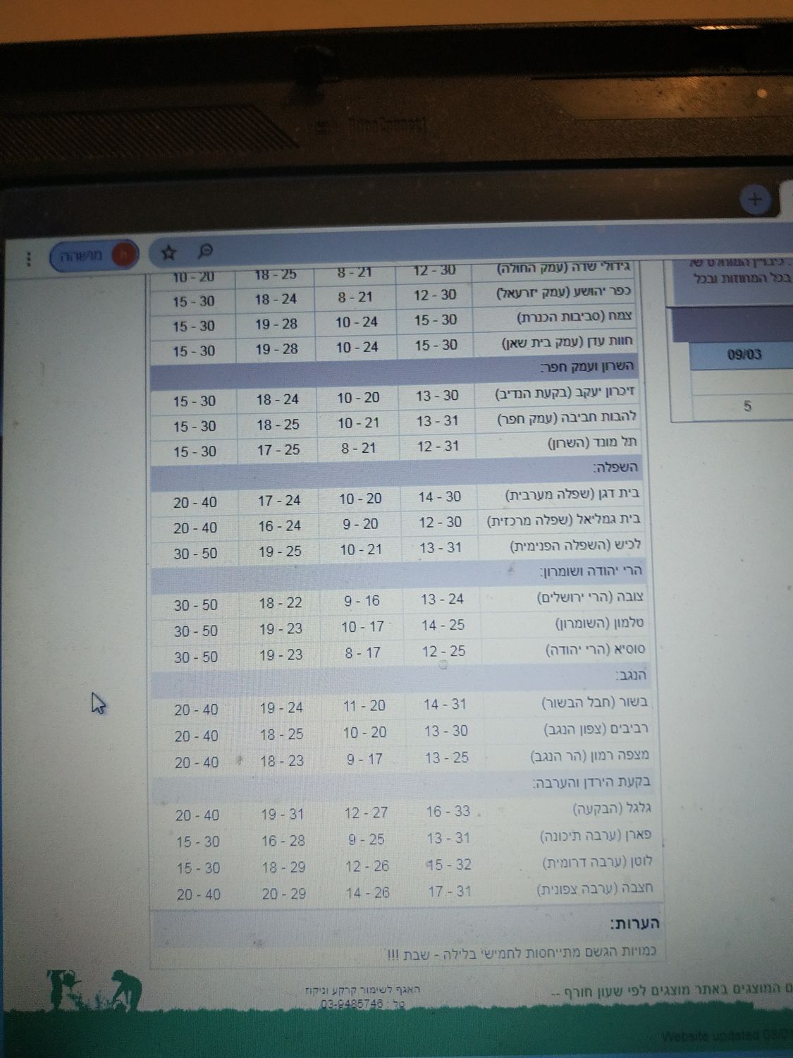 - ניקח את החלק האופטימי בחיזוי משרד החקלאות: כל הרי המרכז וכן השפלה הפנימית אריאל