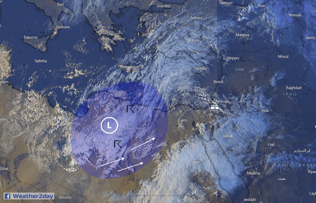 - הפעילות ממשיכה להתקדם מזרחה במדבריות לוב, אפשר להרגיש בשעות אלו את ההתחממות Weather2day