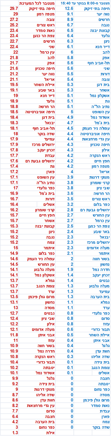 - סוסיא - 3.4 ממ, שני - 3.2, מצפה רמון - 3.1 , פארן - 2.6, ירושלים - 1.4 חנוך א