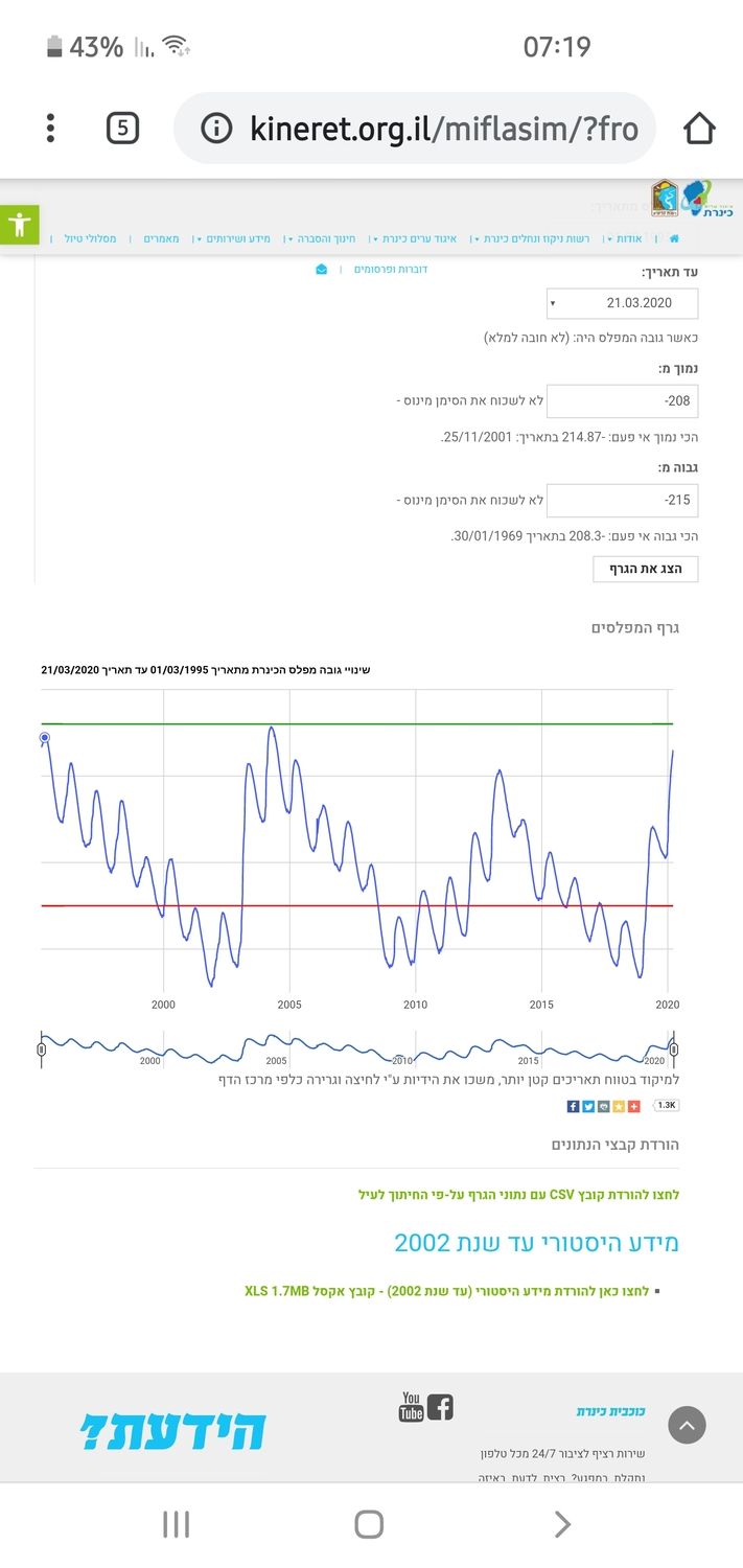 - גרף מפלס הכנרת 25 השנים האחרונות ענן בודד
