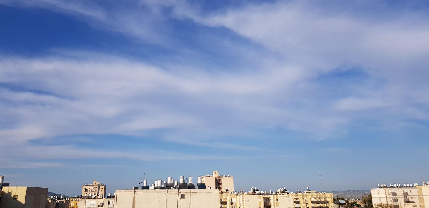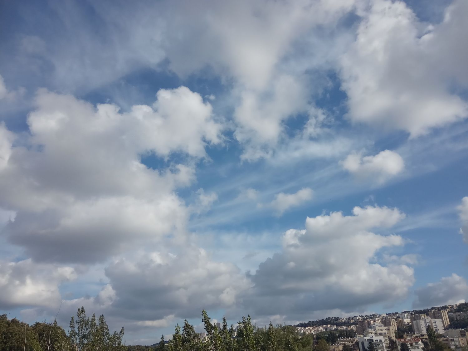 פה השמים מקושטים בצירוסים וקומולוסים מעורבים.