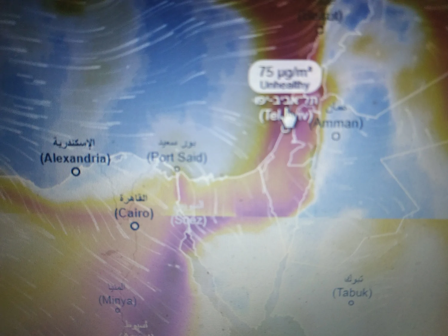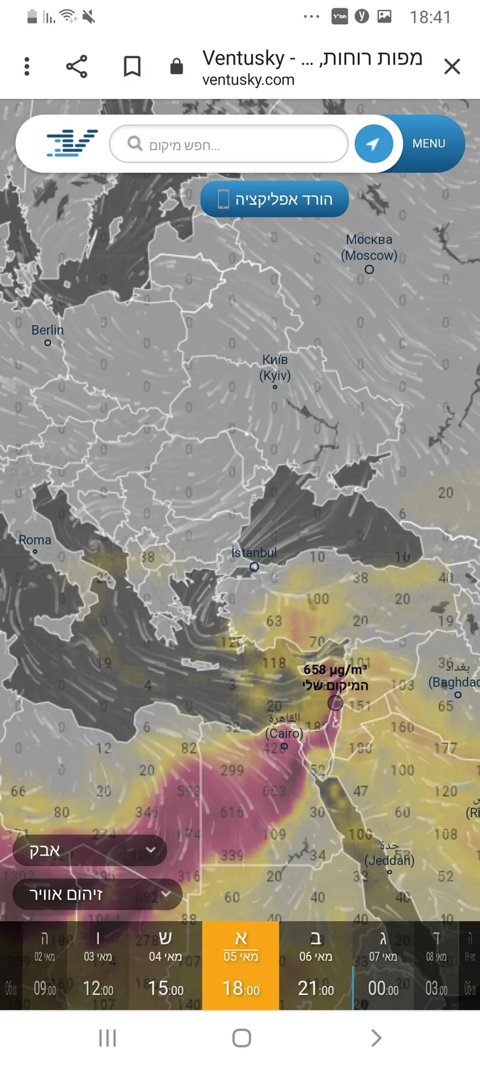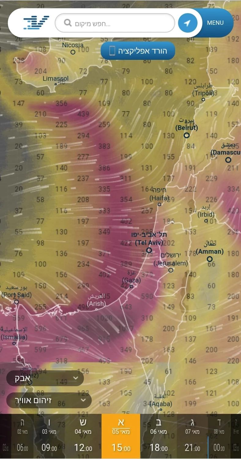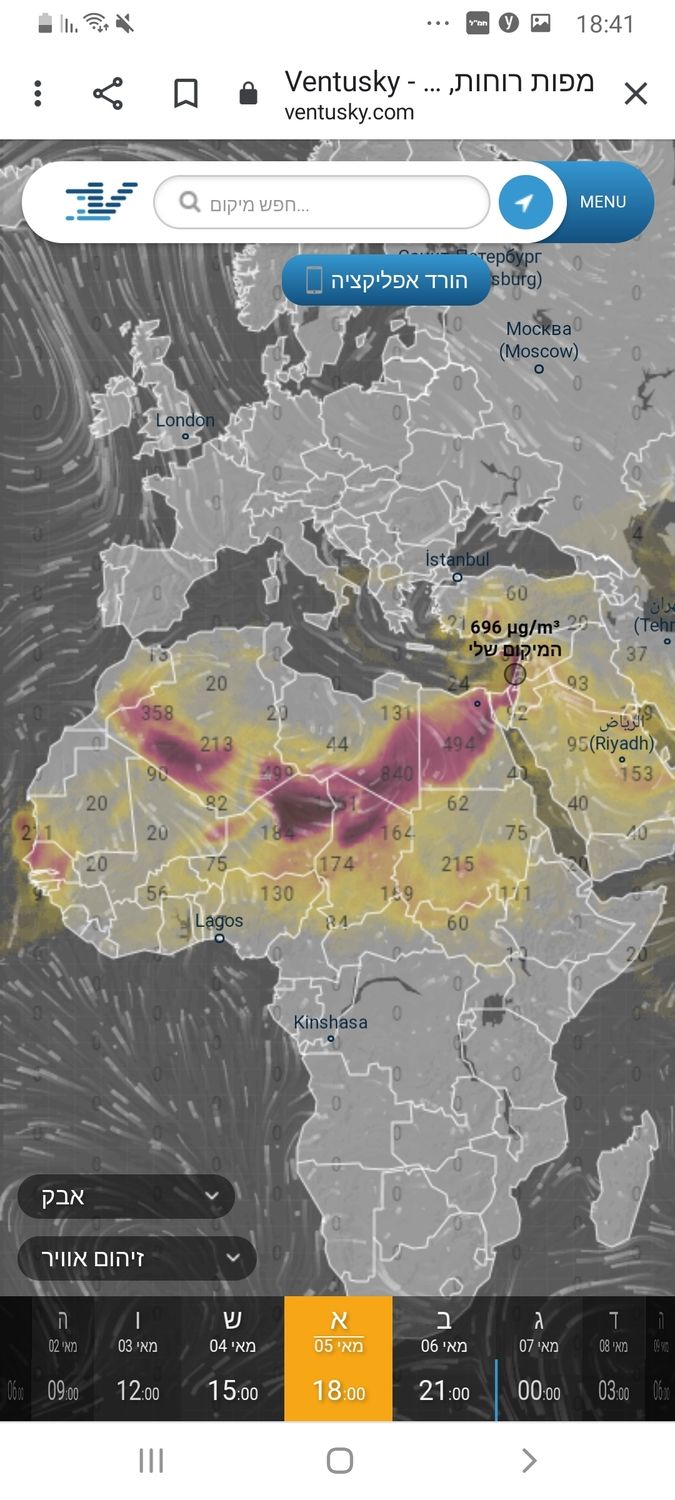 - תמונת מצב של האובך, כרגע על פי המפה זה השיא בערך אילן