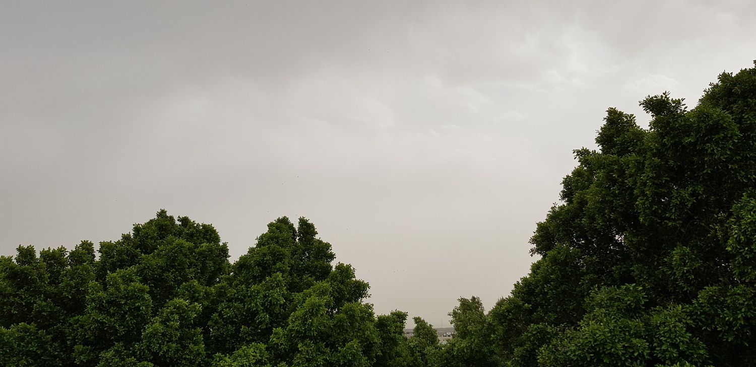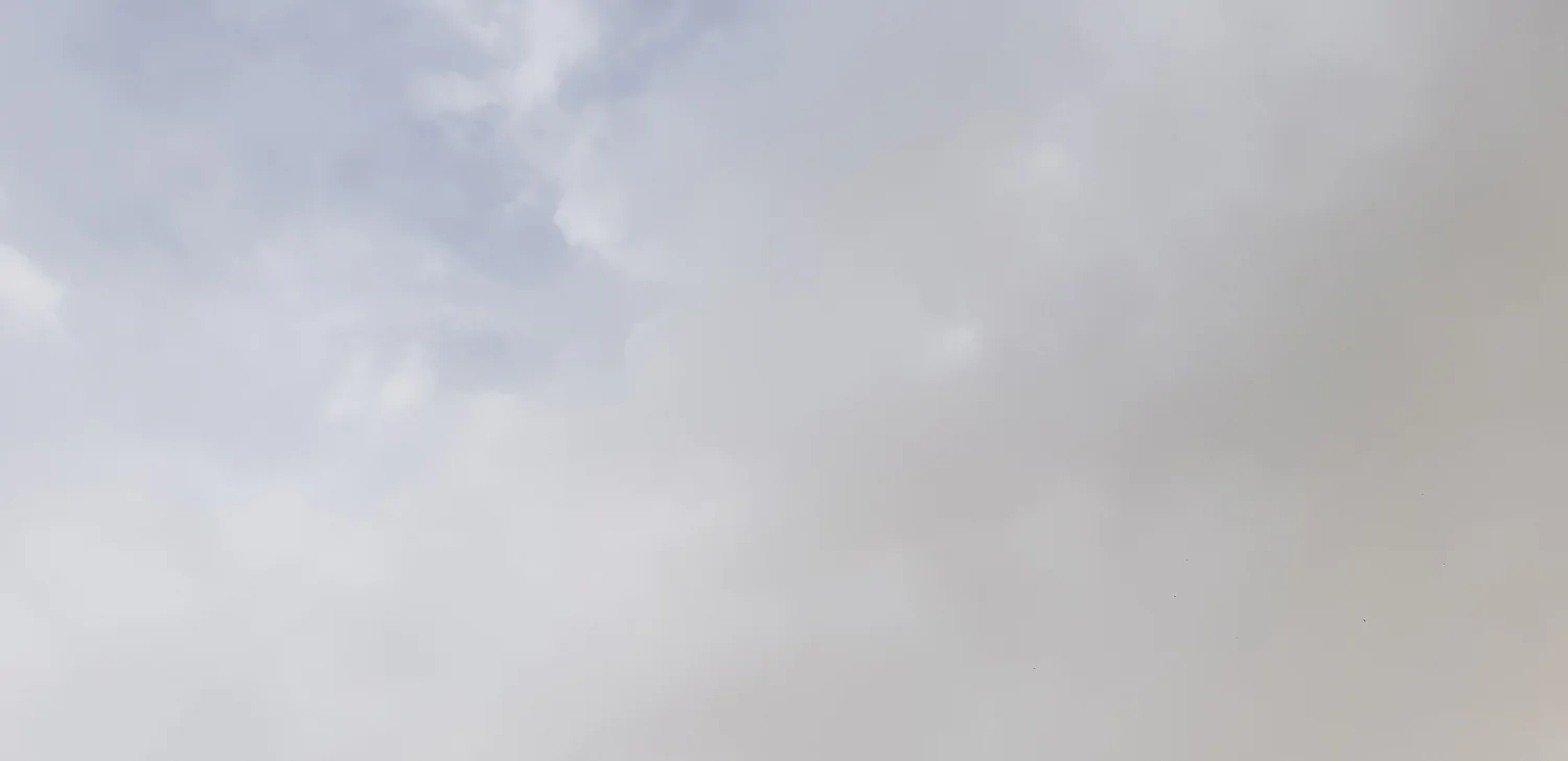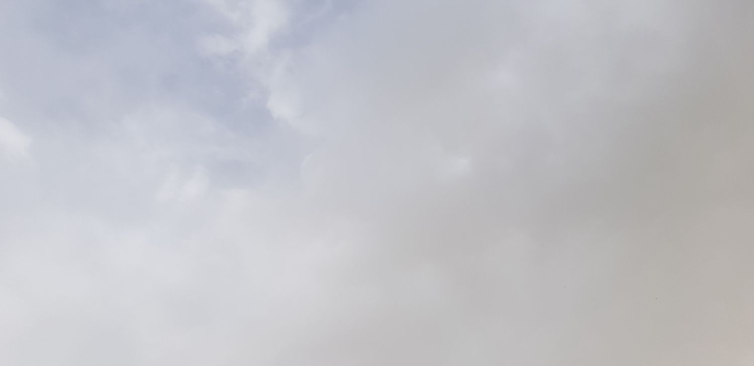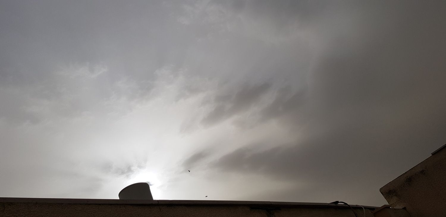 יחד עם עננות בינונית, השמים פה באמת כבר לבנים, אין זכר לגוון הכחלחל שהיה בבוקר. הטמפ' עדיין 29° ונראה שזה המקסימום של היום
