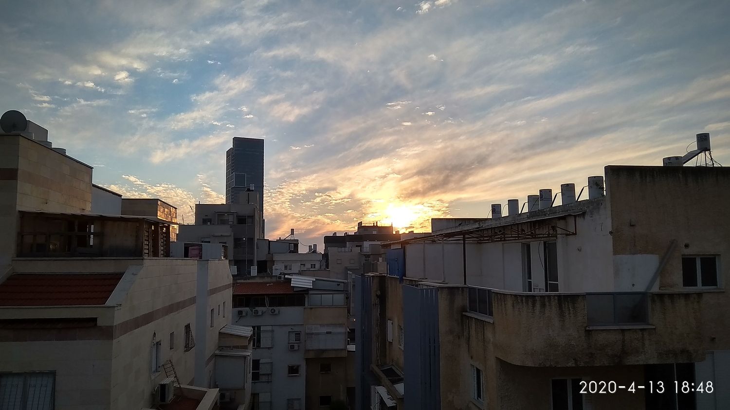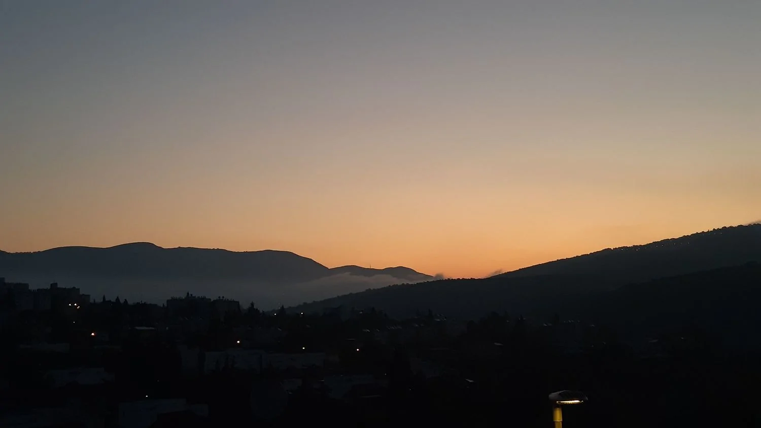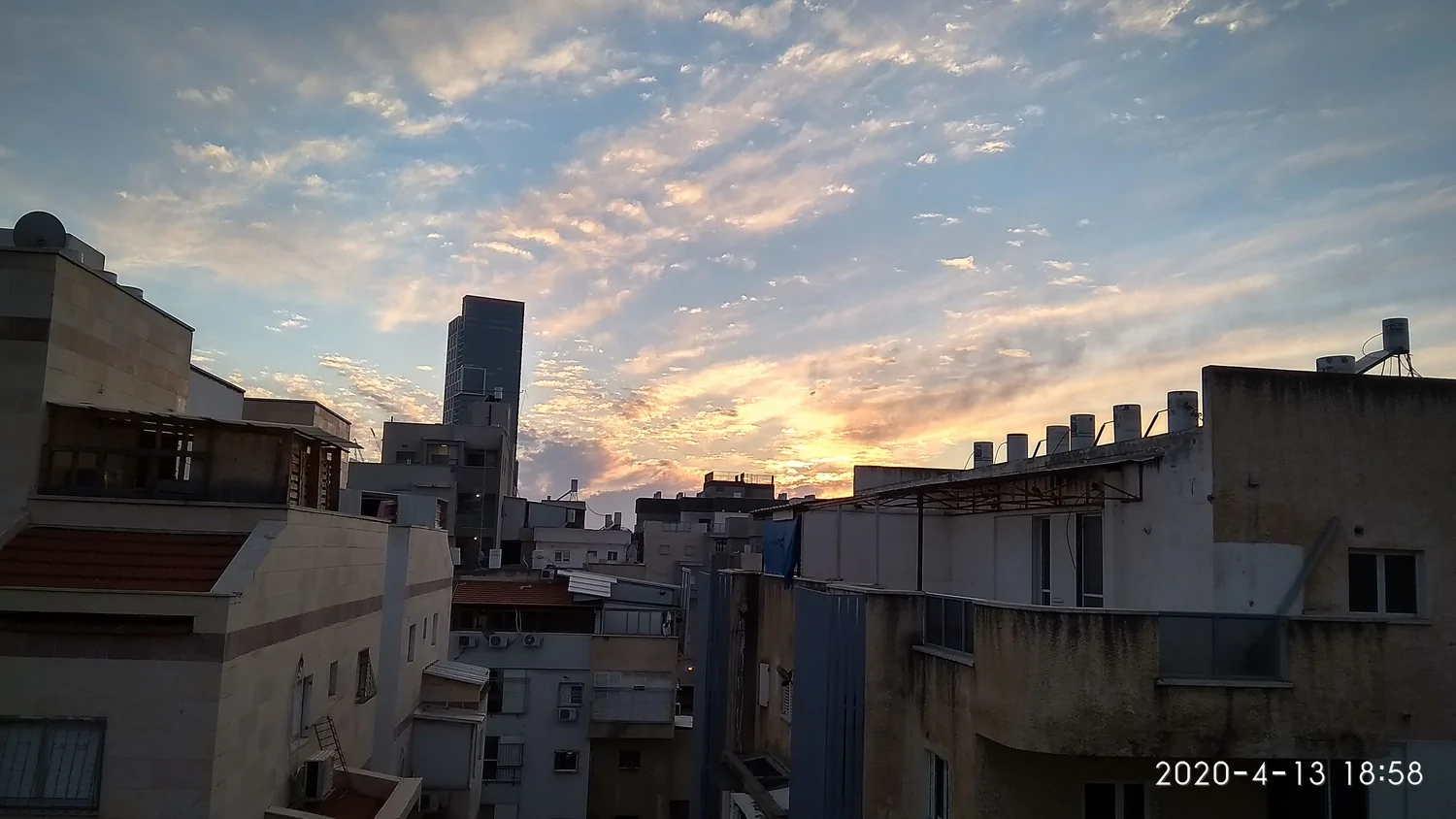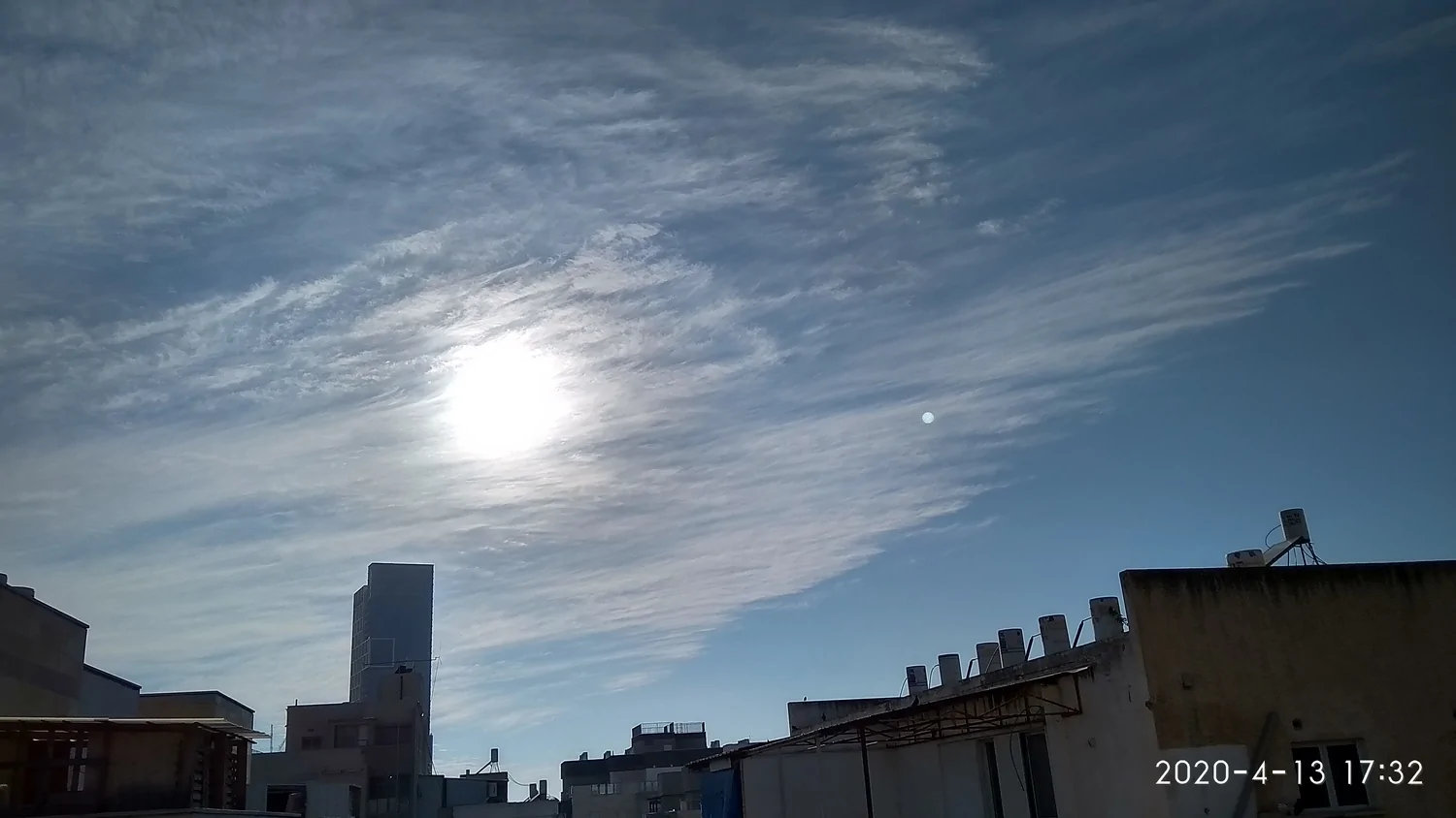 פה השמים היום בהירים כמעט לגמרי במשך כל היום וגם כעת, פרט לפסי עננות גבוהה שהופיעו לזמן קצר בצהריים