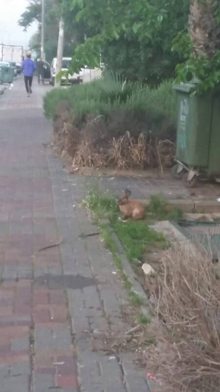 ארנבות, מטיילות להנאתן לאורך הכביש הראשי בעפולה.